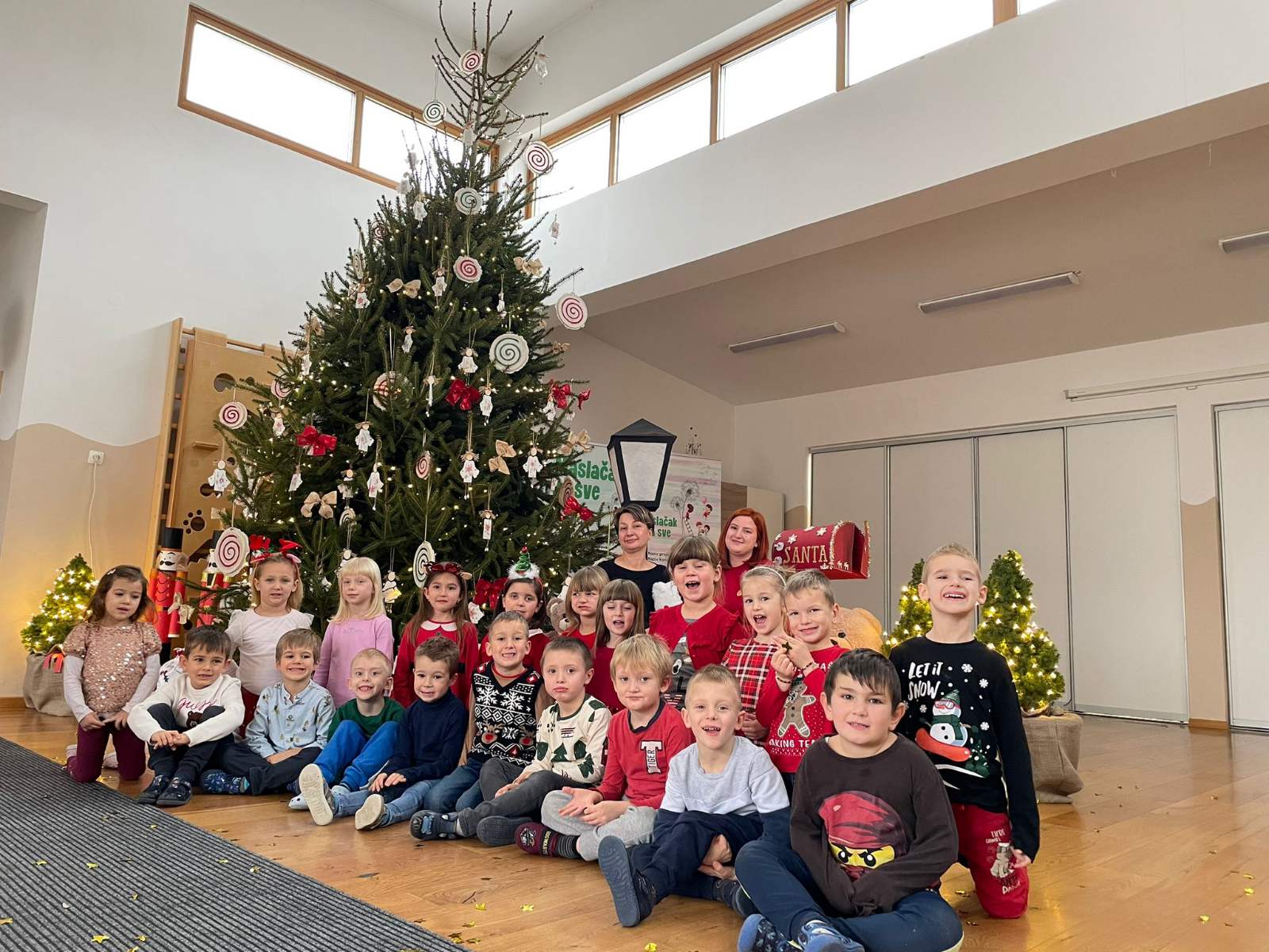 Također, u sobu nam je stigla i odgojiteljica Marija Vinković, koja nam je pričala o biti Božića. Pročitala nam je priču o Isusovom rođenju, a uz znakovne kartice pratili smo tijek priče. Nakon priče smo svi zajedno zapjevali razne božićne pjesmice, a otpjevali smo i pjesmicu na engleskom jeziku, We wish you a merry Christmas.