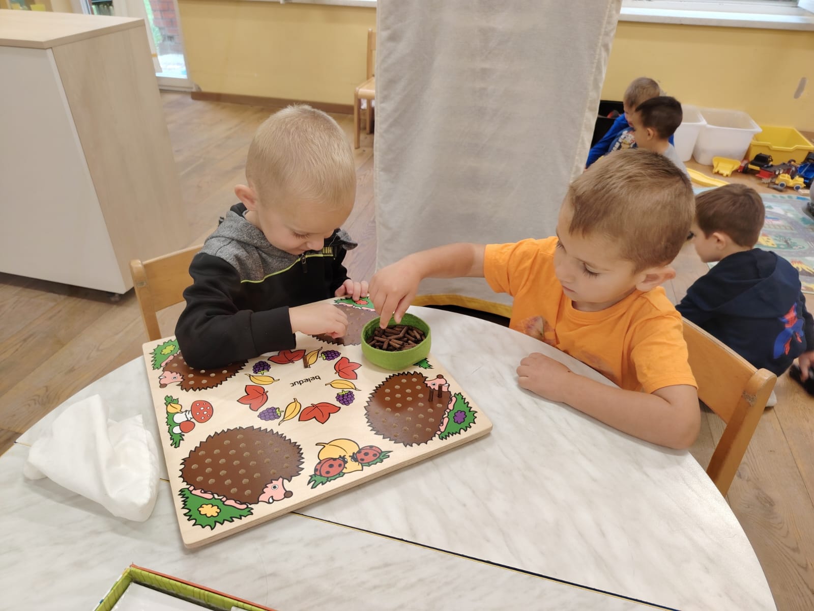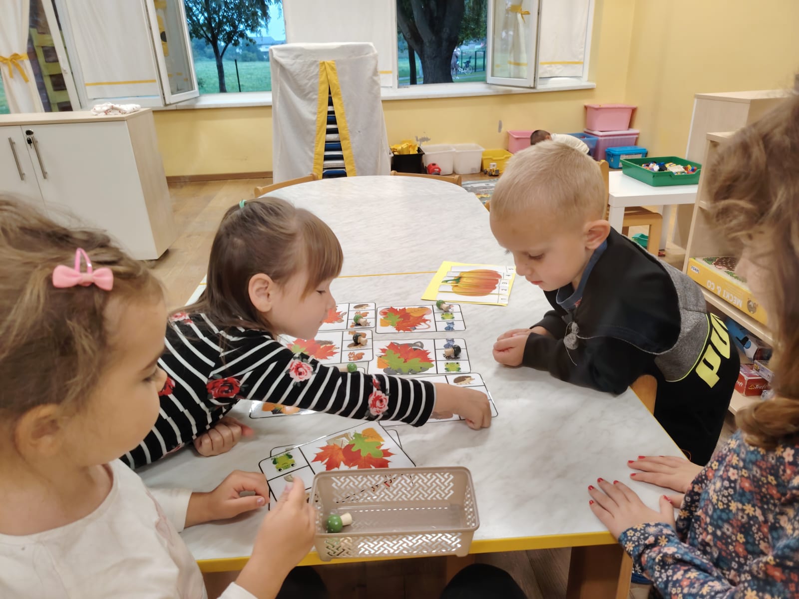 Kroz pjesmice “Savila se bijela loza vinova” i “Jesenska pjesma” dočekali smo jesen uz zajedničko pjevanje, razvijajući govor, glazbeni doživljaj i osjećaj pripadnosti grupi. Stolno-manipulativne igre na temu jeseni dodatno su pridonijele razvoju koordinacije, koncentracije i suradnje među djecom.