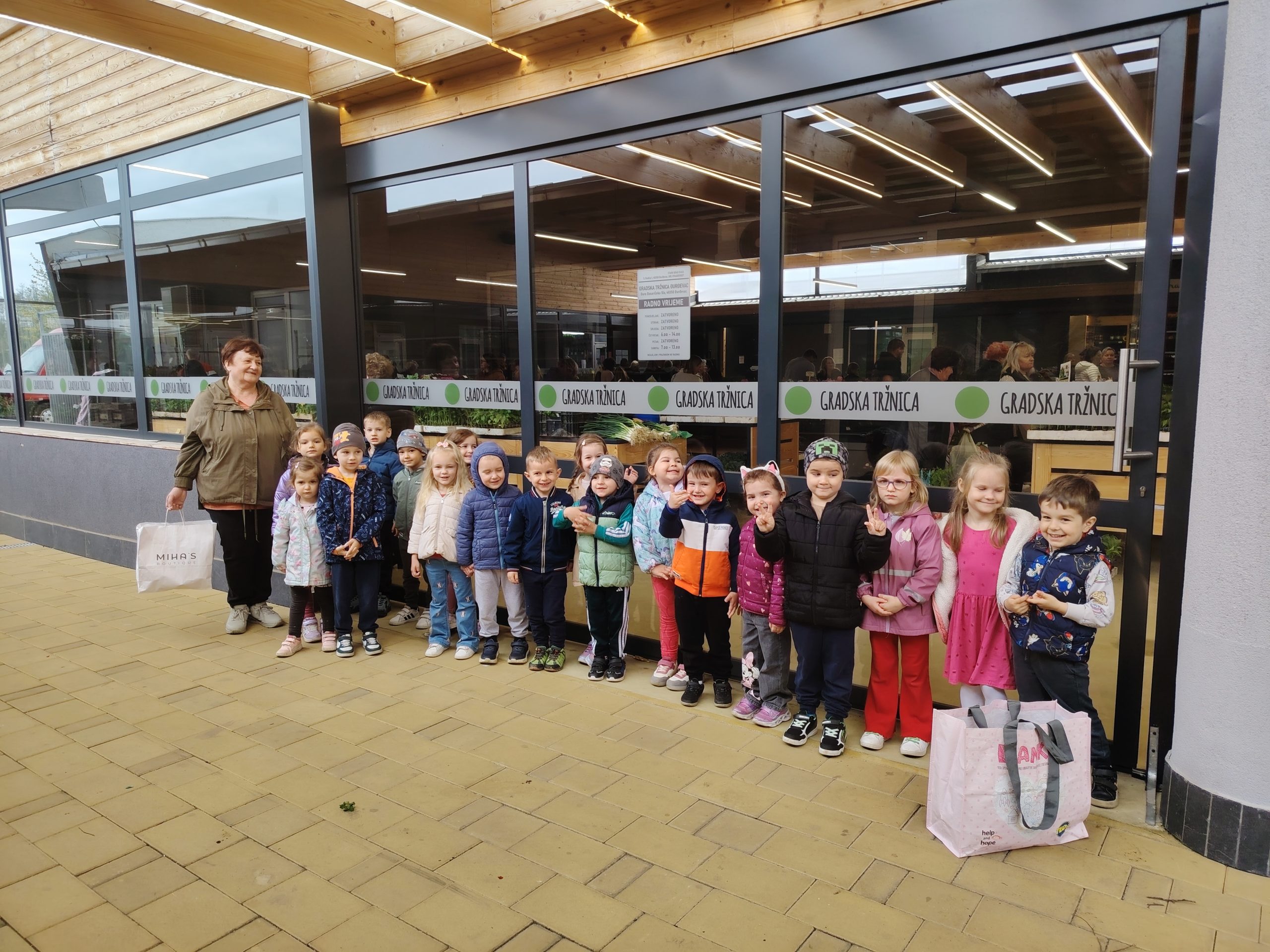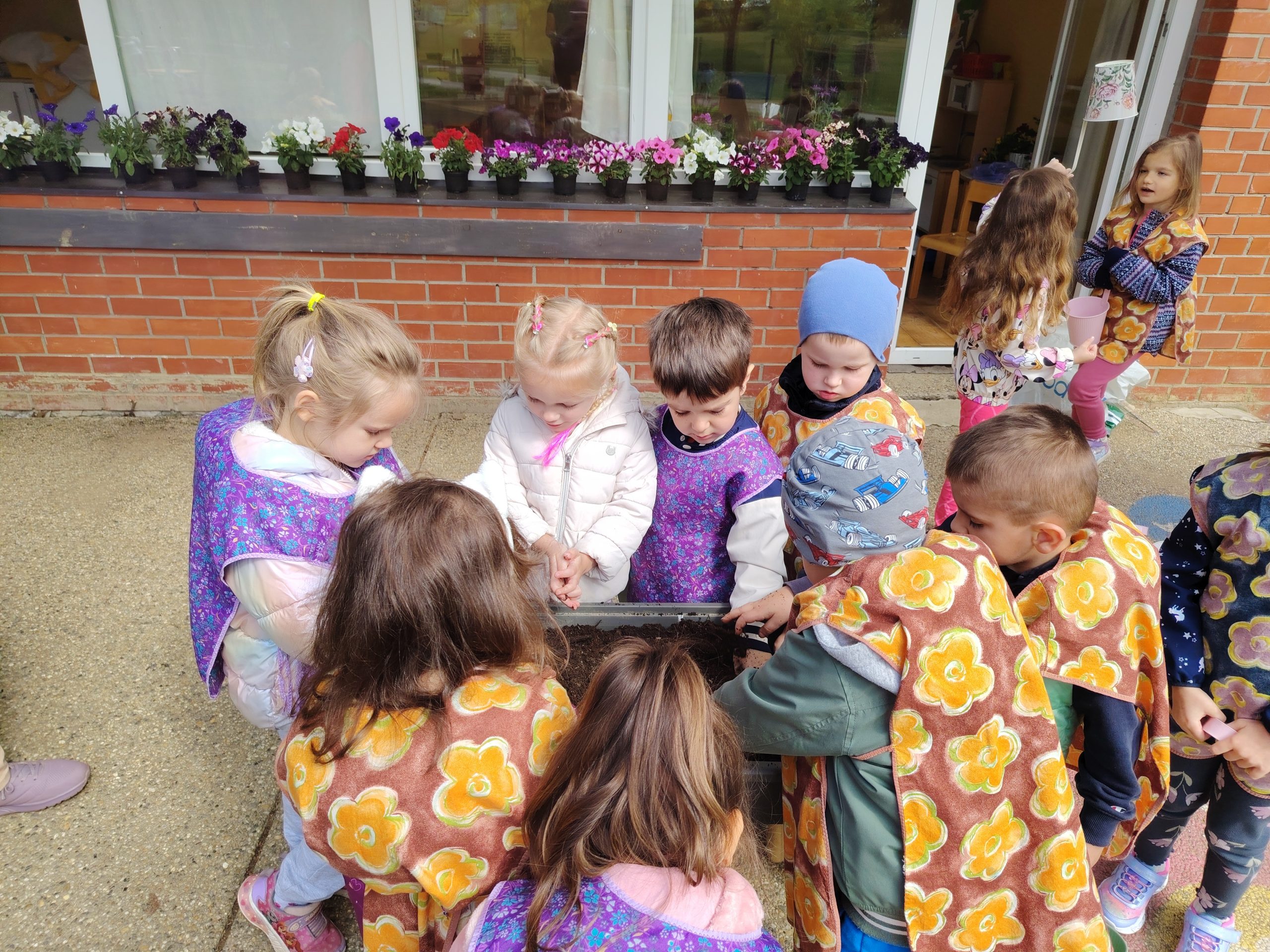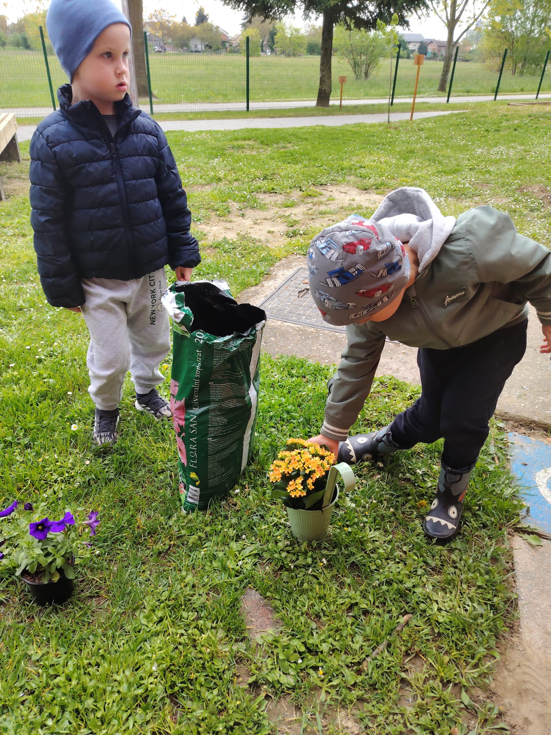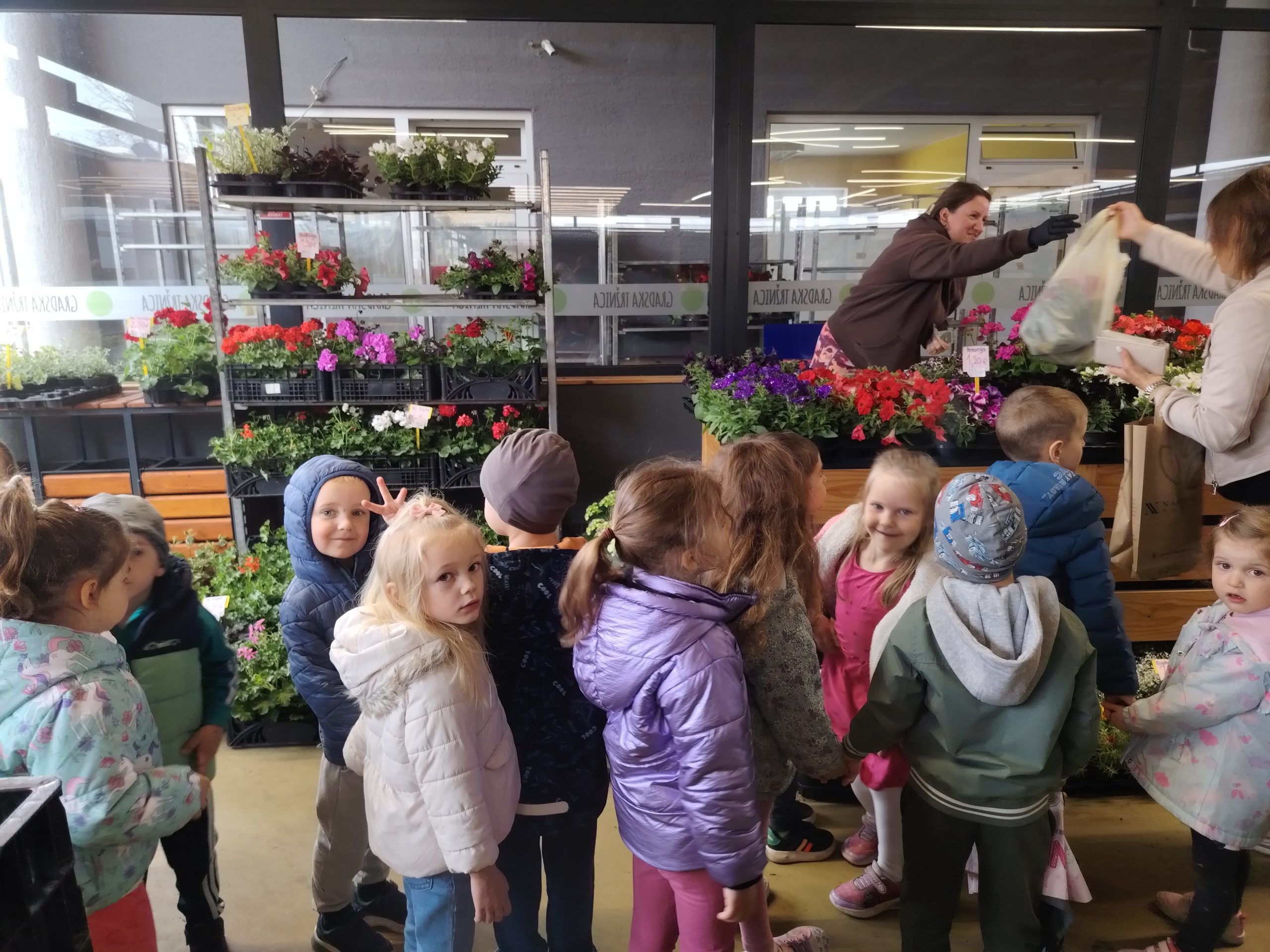 Posjetili smo gradsku tržnicu gdje smo kupili cvijeće, a u aktivnost su se uključili i roditelji donijevši po jedan cvijet za svoje dijete u vrtić. Zajedno smo posadili cvijeće u teglice na našoj terasi i tako je uljepšali. Ovom aktivnosti djeca su razvijala finu motoriku, timski rad i brigu za biljke i prirodu.