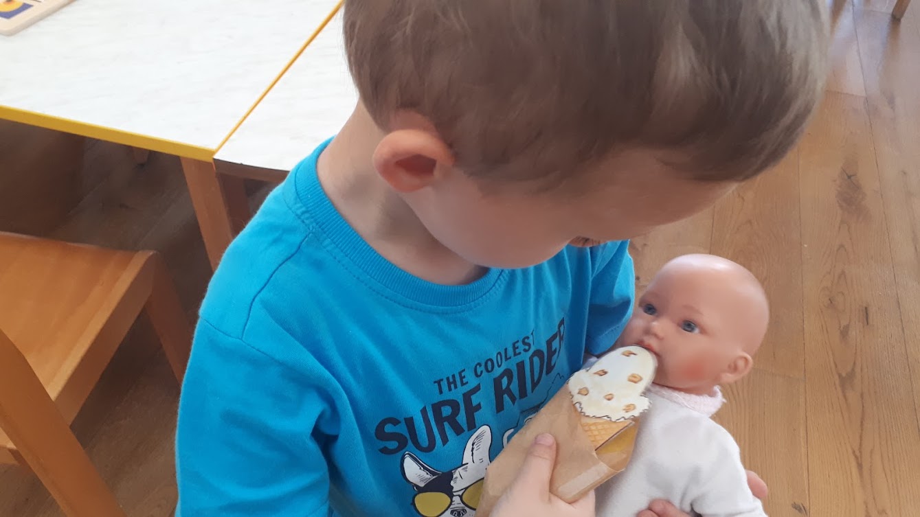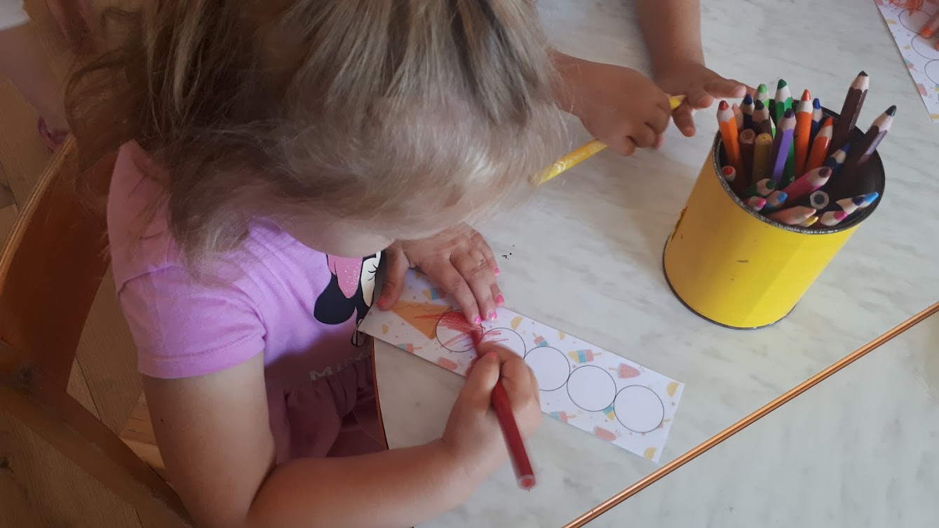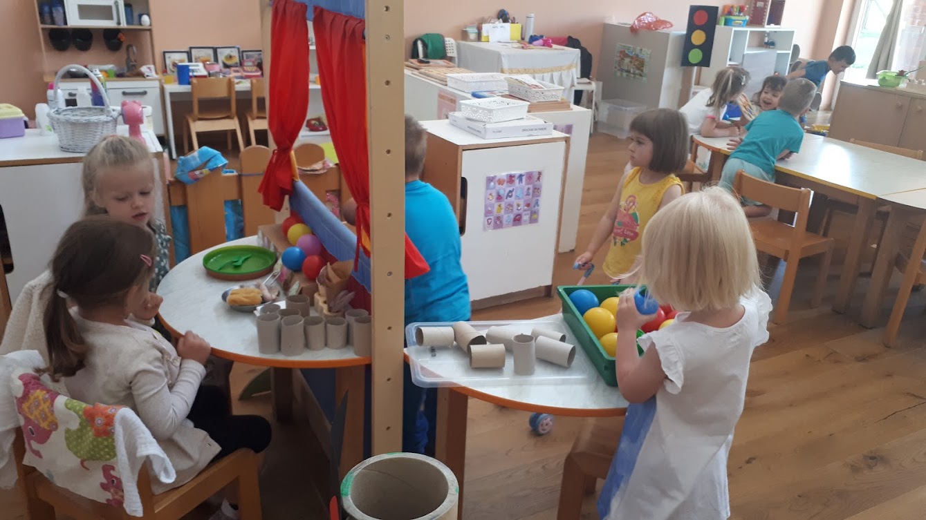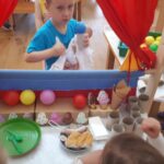 Djeci smo ponudile razne aktivnosti: manipulativnu igru s ciljem uočavanja sličnosti i razlika, slikanje sladoleda u kornetu, lijepljenje i crtanje. Oformile smo centar za igru slastičarnice u kojem smo djeci ponudile: papirnate kornete, čaše i loptice te paravan. Djeca su obogaćivala igru novim materijalima iz sobe i obiteljskog centra i proigravali su situacije iz slastičarnice. Djeci je igra jako interesantna i zanimljiva. Kroz igru djeca uočavaju odnose veličina, imenuju boje, brojeve i razne vrste i okuse sladoleda.