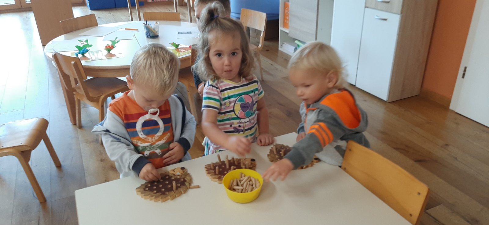 Aktivnosti u Srčekima započele su duhom jeseni. Raznim didaktičkim materijalima približili smo djeci jesen. Na taj način djeca su isprobavala razne mogućnosti umetanja, vađenja, sortiranja i uparivanja. Djeca su ovim aktivnostima razvijala motoriku šake i prstiju, uočavala razlike i sličnosti te vježbala pažnju i koncentraciju. Neki didaktički materijali su djeci bili novi i izazvali korištenje na njima svojstven način. Sve više se kod djece vidi zadovoljstvo kod izvršenja nekog zadatka i upornost u radu. Igre su dostupne djeci u svakom trenutku tako da ih mogu koristiti kad god i na koji god način požele.