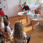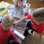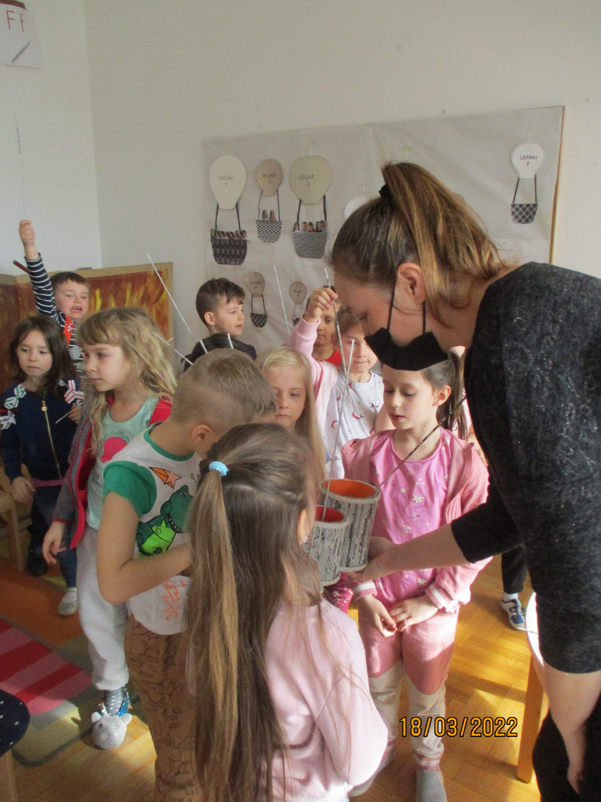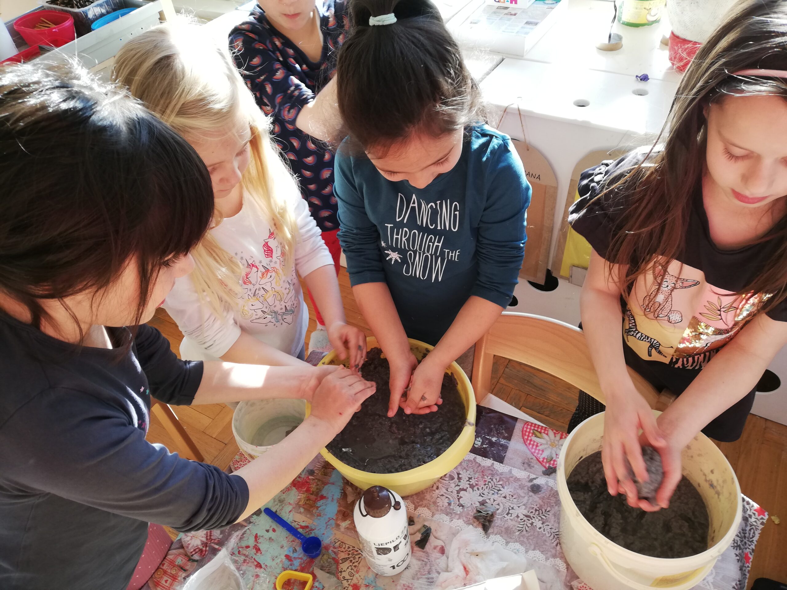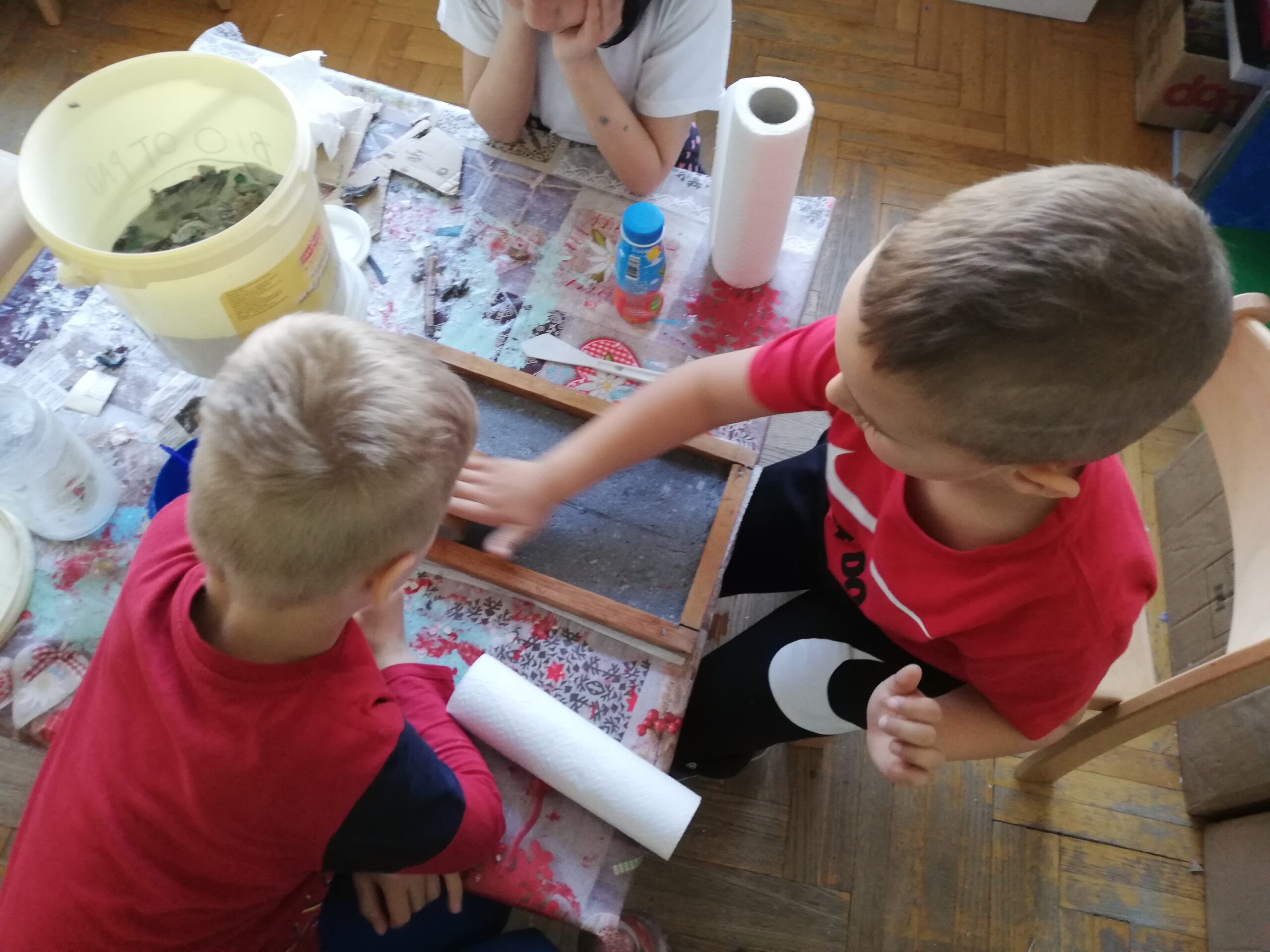 Vjeruje se da je prvi papir izumio Tai Lum u Kini 105 godina prije nove ere. Papir se u početku proizvodio od starih tkanina, a 1798. godine Nicholas Louis Robert izumio je stroja za izradu papira čime je ubrzan postupak izrade papira od drveta. Pitale smo djecu znaju li kako nastaje papir. Nekoliko djece je zaključilo kako papir nastaje u računalu ili printeru. Pogledali smo video zapise o ručnoj izradi papira u Kini i video zapise o tome po čemu su ljudi pisali prije nego su izumili papir. Ponudile smo djeci glinu i svatko je napravio pločicu na koju je napisao svoje ime. Kroz priču Drvo ima srce, stihove Kad bi drveće hodalo i eko pjesmice djecu smo upoznale s važnošću brige o našim šumama te sakupljanja i recikliranja papira.