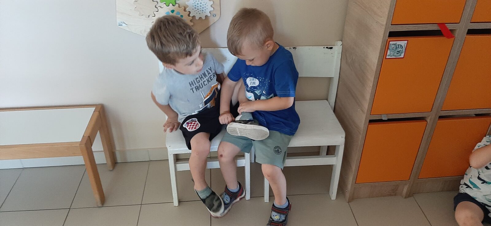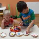 Srčeka se sva sakupljaju na doručak, u posljednje vrijeme ako žele još sama dolaze do servisnih kolica i uzimaju hranu. Ali što bi bio doručak bez brkova. Kasnije imamo jutarnji krug u kojem se dodajemo loptom i izgovaramo svoje ime, ime prijatelja pored nas…kako bi se svi vidjeli i saznali tko je u vrtiću. U aktivnosti često pristupamo pomoću slikovnica koje su tematski odabrane. Ponekad i sama djeca preuzmu ulogu odgajatelja. Čitamo, listamo, imenujemo i razgovaramo što vidimo. Po stolovima u sobi su didaktični materijali koji su odgojiteljice pripremile za taj dan. Brojimo, klasificiramo i istražujemo. Likovno izražavanje raznim tehnikama dostupne su djeci u svakom trenutku. Srčeka odlaze i na veliko dječje igralište i prilikom toga pomažu prijateljima. Nadam se da ste uživali u malom presjeku dnevnog rada u vrtiću i vidimo se sutra.