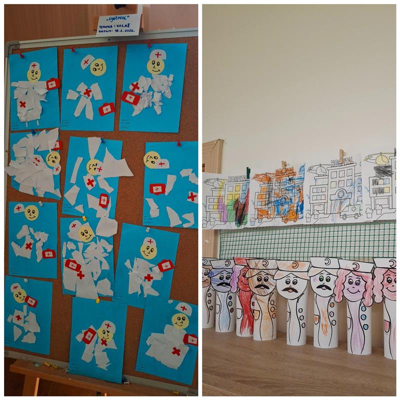 Protekli tjedan Tigrići su razvijali pozitivan odnos prema zdravlju kroz igru i razgovor. Djeca su opremila novi centar aktivnosti „Kod liječnika“ te kroz simboličku igru preuzimala uloge liječnika i pacijenata. Čitanjem slikovnica o bakterijama, virusima, liječnicima i ljudskom tijelu usvajali smo načine zaštite od bolesti te saznali koje poslove obavljaju liječnik i zubar. Stolno-didaktičnim igrama poput memory s medicinskim instrumentima te puzzle s motivom liječnika razvijali smo sposobnost uočavanja sličnosti i razlika te prepoznavali medicinske instrumente i njihove namjene. U likovnim aktivnostima djeca su bojanjem bojanke, rezanjem i lijepljenjem kolaža i izradom liječnika od papira razvijala maštu, koncentraciju i spretnost ruku. Kroz istraživačko-spoznajne aktivnosti razgovarali smo i učili o tome zašto je važno ići doktoru i zubaru te u kojim situacijama. Prošetali smo do Doma zdravlja da bismo vidjeli gdje doktori rade. Također, posjetili smo zubaricu Jelenu koja nas je vrlo rado ugostila u svojoj ordinaciji te pokazala kako radi. Djeca su sa zanimanjem razvrstavala zdravu i nezdravu hranu za zube, a posebno ih je oduševilo kada im je pokazala na koji način popravlja zube. Na kraju su djeca dobila poklone u znak pažnje. Tjedan nam je prošao vrlo zanimljivo zbog svih posjeta i aktivnosti koje smo imali.