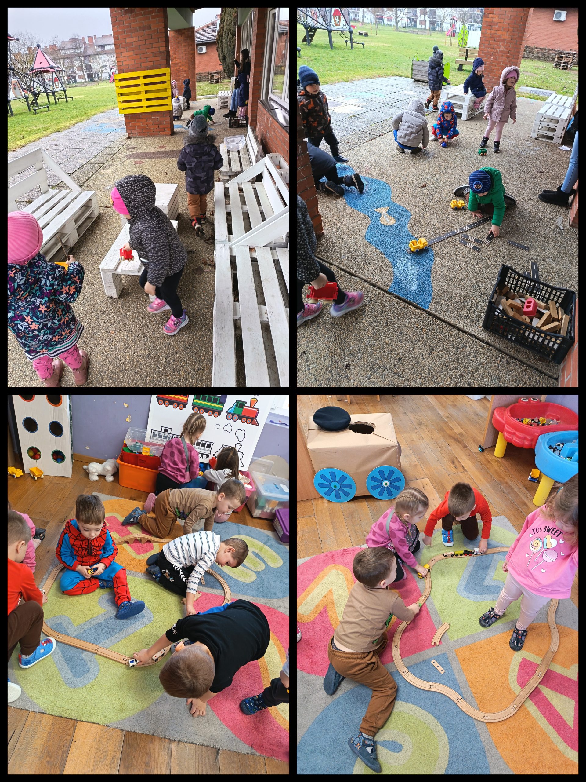 U predškolskoj dobi kretanje je jako važno za dječji razvoj. Kroz pokret djeca se razvijaju, uče, rastu. U vrtiću se zato trudimo djeci ponuditi razne aktivnosti. Tijekom sata tjelesnog djeca se zabavljaju, ali i uče sebe kontrolirati, čekati red, potaknuti razne mišiće kroz vježbe za pojedine dijelove tijela, provlače se, kotrljaju. Boravkom na zraku djeca u šetnji potiču koordinaciju s grupom, upoznaju prirodu ili svijet koji je pred njima. Tako smo kroz šetnju posjetili Željeznički kolodvor, Autobusni kolodvor i vozila koja idu pokraj nas. Saznali smo i da sada ne voze vlakovi nego samo autobusi iz Đurđevca. U šetnji smo otišli i do gradskog igrališta koje nas je razveselilo. Igrali smo se raznim prijevoznim sredstvima, vozili smo vlak i auto koji smo sami napravili. U igrama u sobi krećemo se kada plešemo, kada se igramo i vozimo razne vozilice, kolica s lutkama. Krećemo se i kada režemo, lijepimo, odnosno kada trebamo uzeti boju ili papir. Krećemo se i tijekom dramatizacije s lutkama te kada prelazimo iz aktivnosti u aktivnost. S djecom je važno mnogo boraviti na svježem zraku, družiti se u igrama s loptom, poticati ih na kretanje. Kaže se da sretna i zadovoljna djeca bolje uče. A što ima boljeg od kretanja? Krećite se na svježem zraku sa svojom djecom.