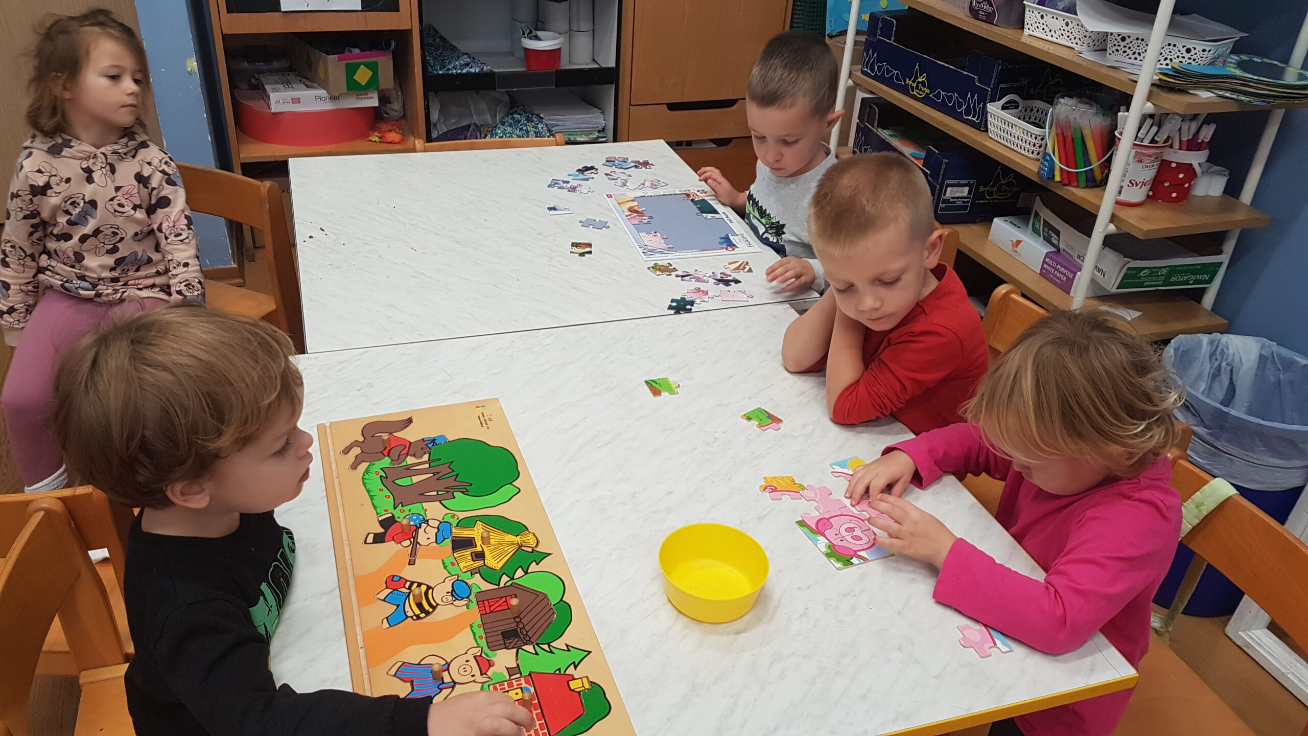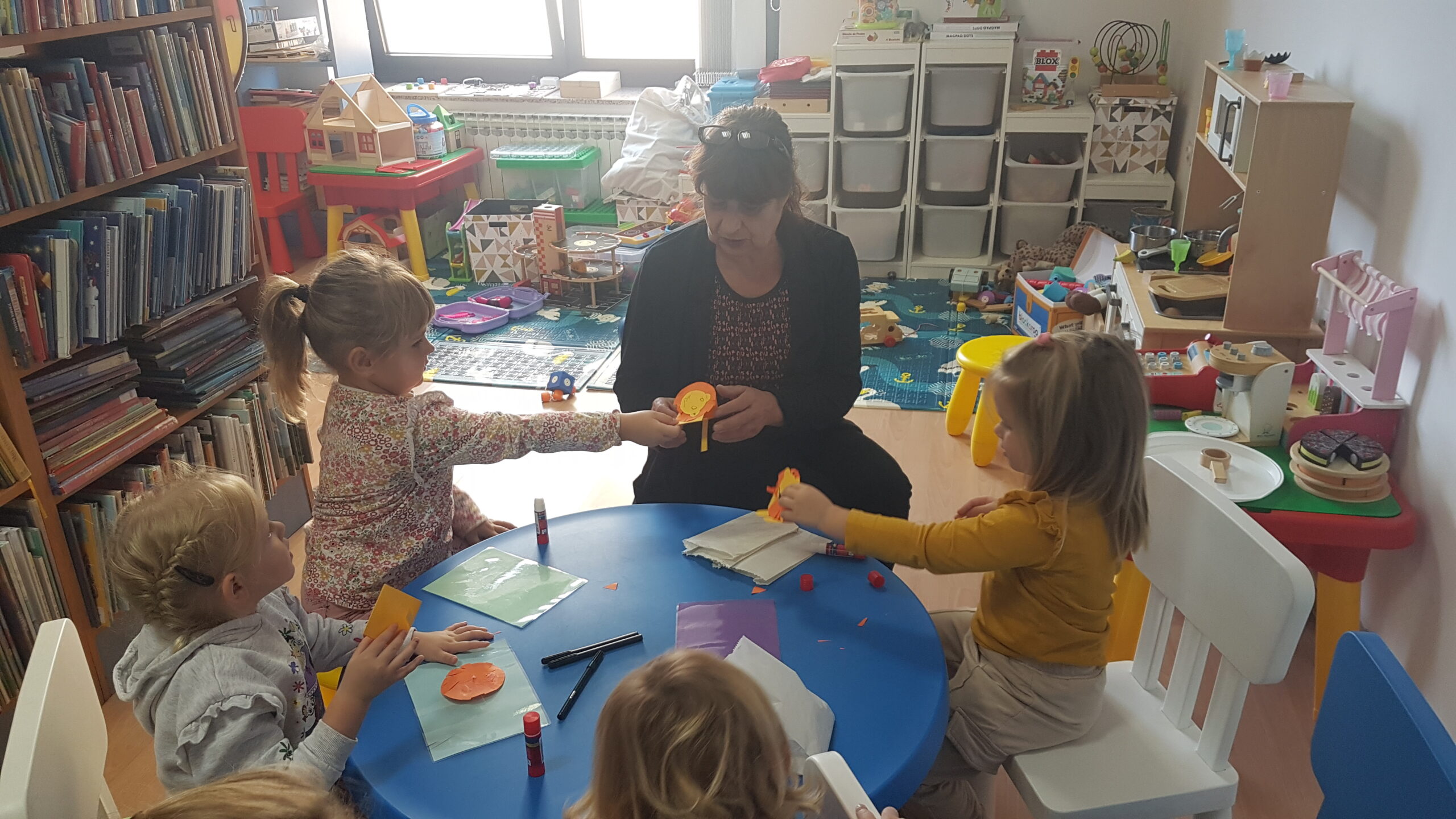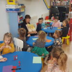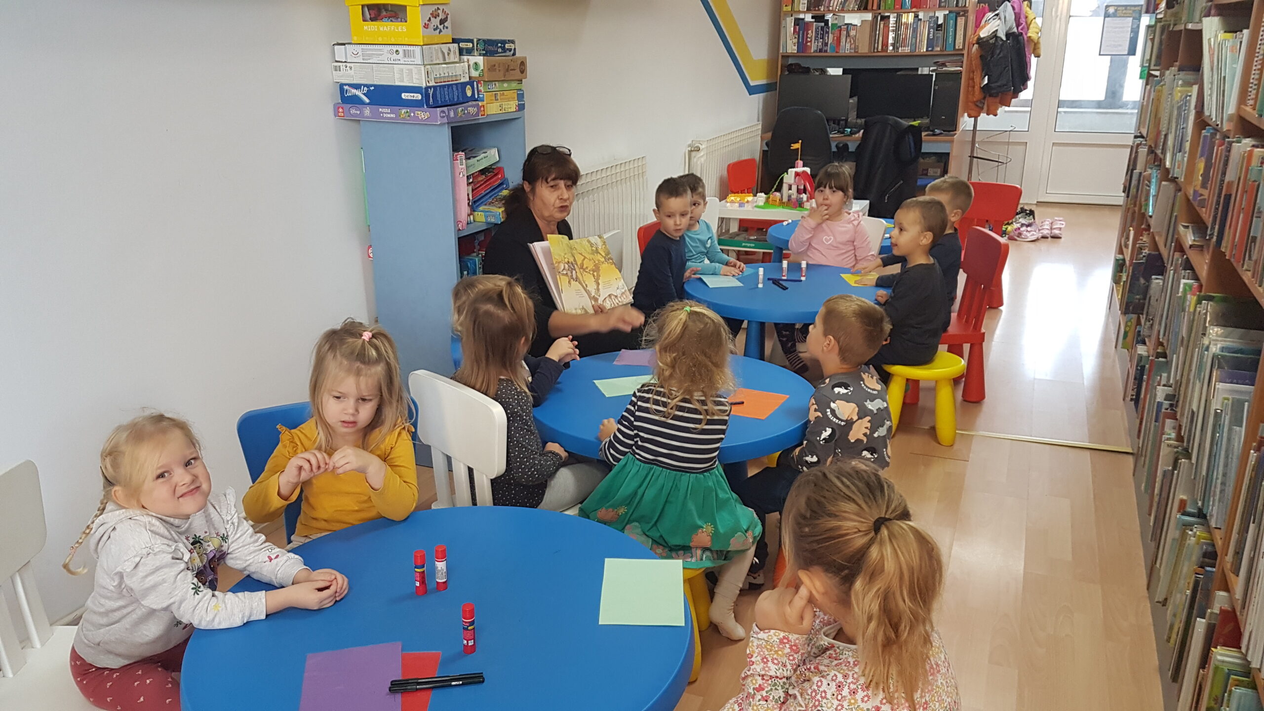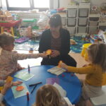 Medvjedići nastavljaju sa svojim projektom pa smo tako čitali slikovnicu Snjeguljicu i 7 patuljaka te odlične priče iz serije „ Bajke koje su pošle po krivu“. Slikovnice su izvrsno sredstvo za razgovor o emocijama, a Snjeguljica i ljutiti patuljak upravo je jedna od njih koja nas uči kako se nositi s emocijom ljutnje. Čitali smo Tri praščića, Vuk i sedam kozlića, Tri praščića i prehlađeni vuk te poticale djecu da priču nacrtaju ili da odglume s lutkicama. Proveli smo razne likovne aktivnosti izrađujući čarobno ogledalo, praščiće, kućicu od praščića i dr. Kroz razne stolne igre smo razvijale pažnju i vizualnu percepciju. Djeca su pokazala velik interes za slaganje puzzli te igru memory. Bili smo mali graditelji te gradili kućice od raznih kockica i tuljaca. Tijekom mjeseca knjige posjetili smo i Dječji odjel knjižnice Đurđevac. Knjižničarka Katarina pročitala nam je slikovnicu Arlo: lav koji nije mogao zaspati te smo proveli radionicu u kojoj smo izradili lavove od kolaža, a na kraju djeca su se poigrala sa mnoštvo igračaka kojih ima u knjižnici. Učlanjenje u knjižnicu je besplatno pa zato potičemo sve roditelje da s djecom posjete knjižnicu i razvijaju kod djece ljubav prema knjizi od malih nogu.