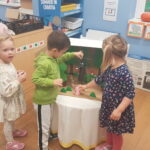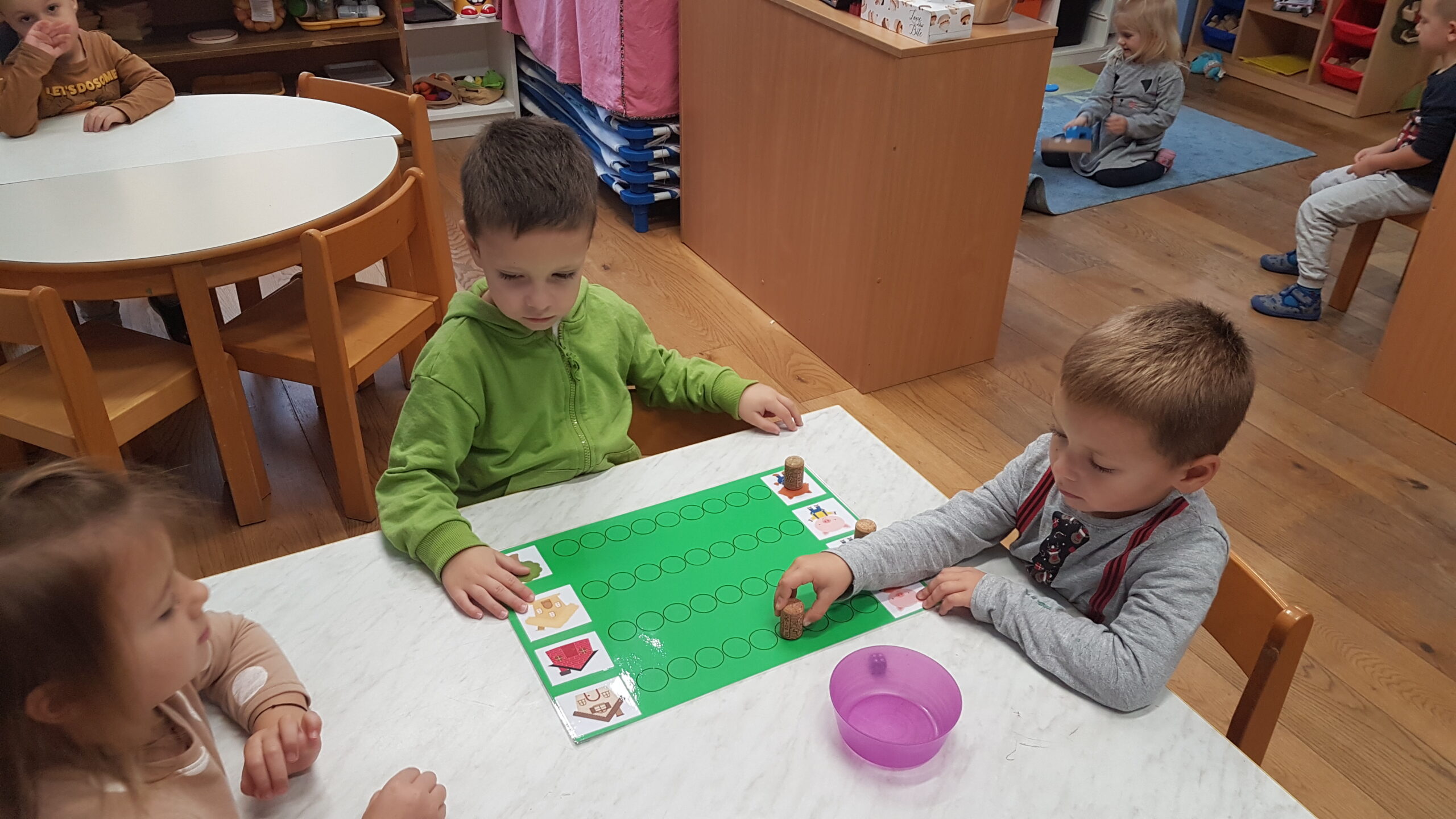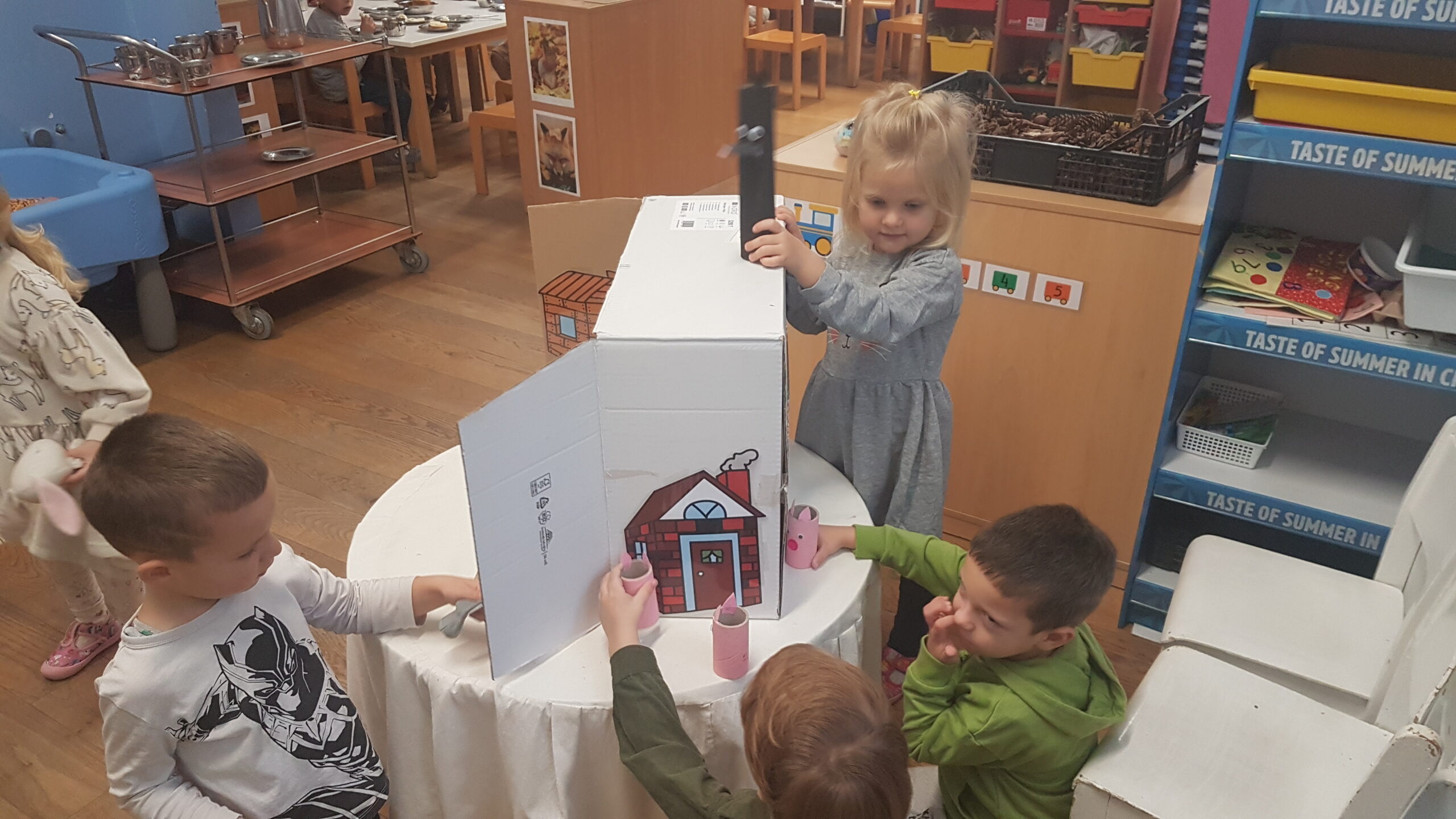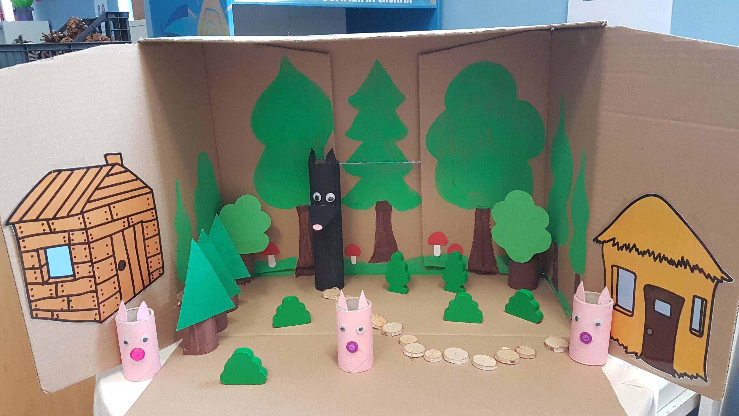 Medvjedići nastavljaju sa svojim projektom pa smo tako čitali slikovnicu Snjeguljicu i 7 patuljaka te odlične priče iz serije „ Bajke koje su pošle po krivu“. Slikovnice su izvrsno sredstvo za razgovor o emocijama, a Snjeguljica i ljutiti patuljak upravo je jedna od njih koja nas uči kako se nositi s emocijom ljutnje. Čitali smo Tri praščića, Vuk i sedam kozlića, Tri praščića i prehlađeni vuk te poticale djecu da priču nacrtaju ili da odglume s lutkicama. Proveli smo razne likovne aktivnosti izrađujući čarobno ogledalo, praščiće, kućicu od praščića i dr. Kroz razne stolne igre smo razvijale pažnju i vizualnu percepciju. Djeca su pokazala velik interes za slaganje puzzli te igru memory. Bili smo mali graditelji te gradili kućice od raznih kockica i tuljaca. Tijekom mjeseca knjige posjetili smo i Dječji odjel knjižnice Đurđevac. Knjižničarka Katarina pročitala nam je slikovnicu Arlo: lav koji nije mogao zaspati te smo proveli radionicu u kojoj smo izradili lavove od kolaža, a na kraju djeca su se poigrala sa mnoštvo igračaka kojih ima u knjižnici. Učlanjenje u knjižnicu je besplatno pa zato potičemo sve roditelje da s djecom posjete knjižnicu i razvijaju kod djece ljubav prema knjizi od malih nogu.