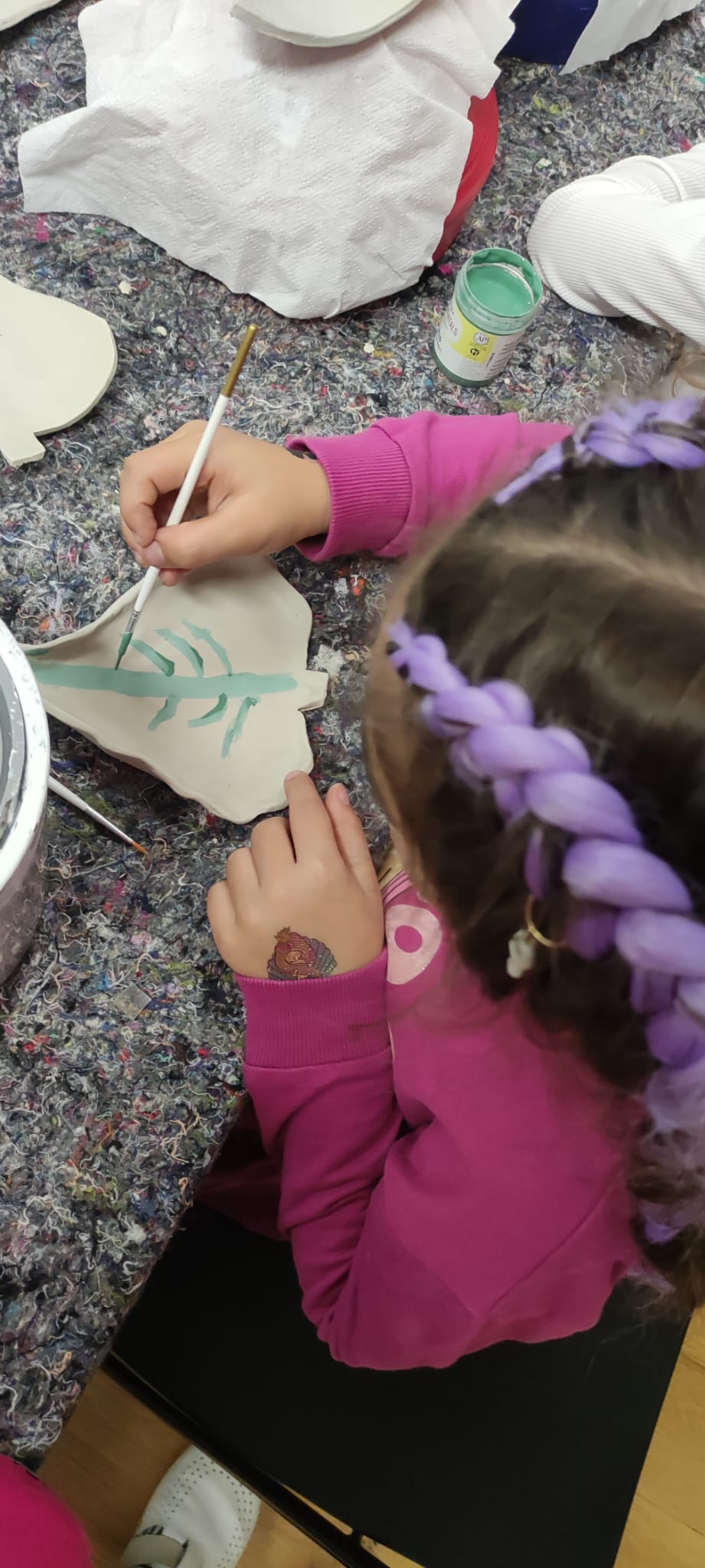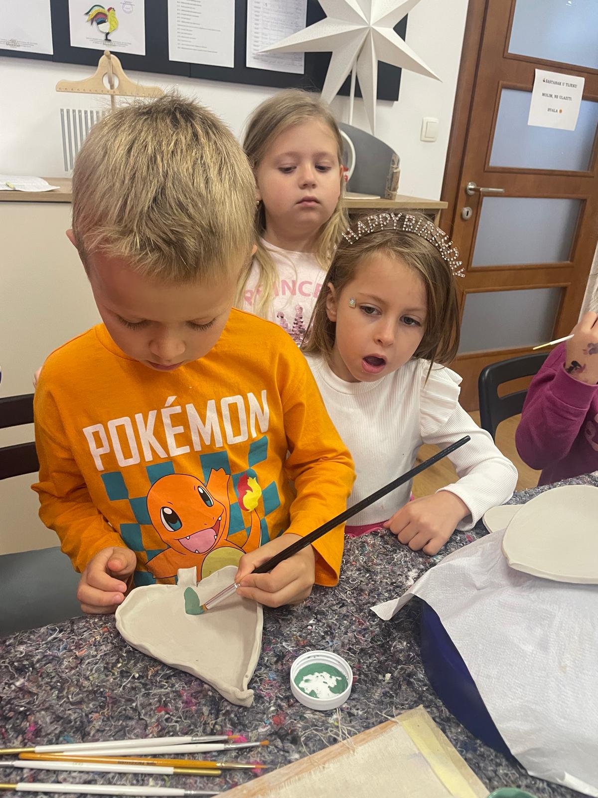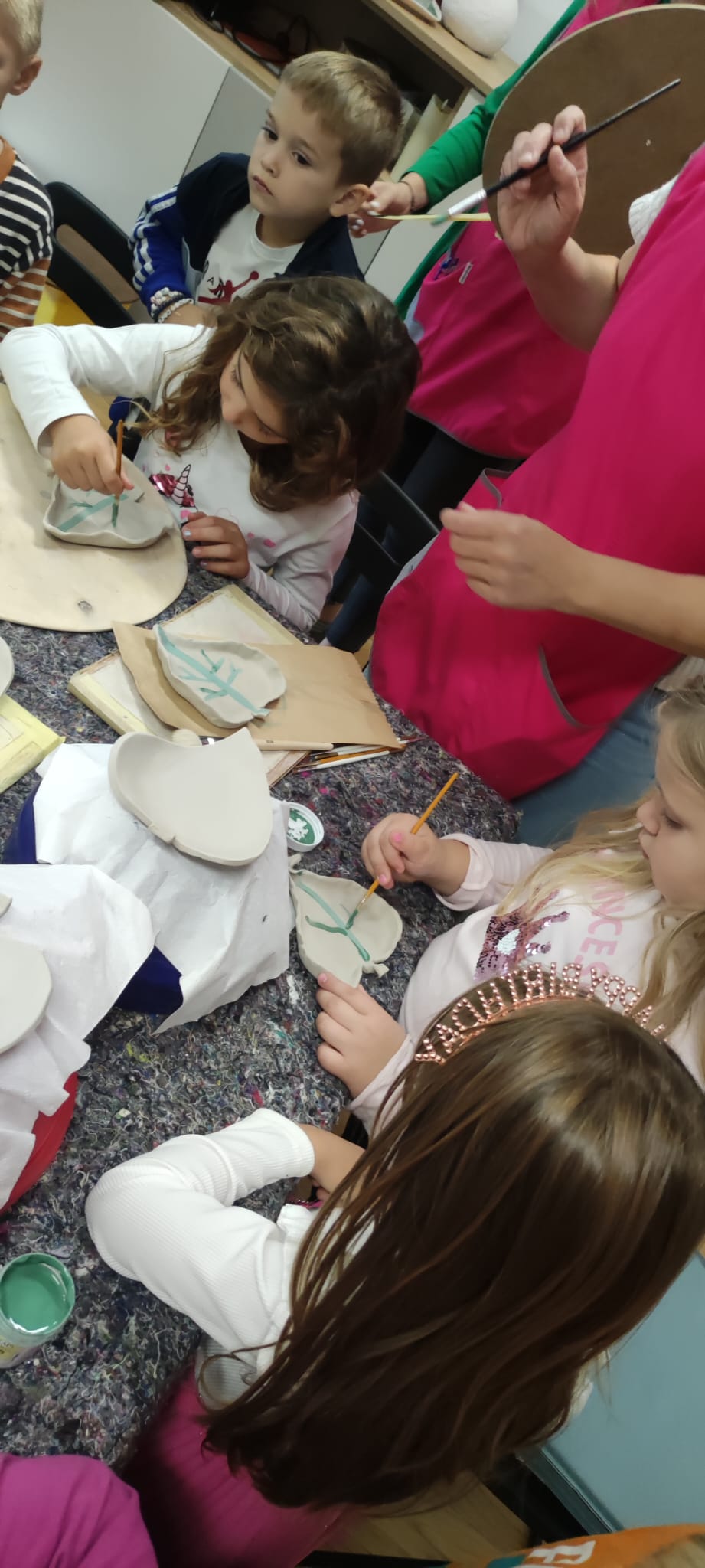 Djeca su izrađivala vlastite keramičke tanjuriće, svakodnevno po malo, s puno pažnje i strpljenja. Oblikovala su glinu, dodavala ukrase i boje, promatrala promjene u materijalu te se radovala svakom novom koraku u procesu nastanka svojih malih umjetničkih djela. Na taj su način razvijala finu motoriku, preciznost, upornost i osjećaj za estetiku, a ponos na vlastiti rad bio je najveća nagrada.