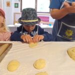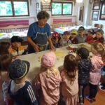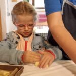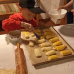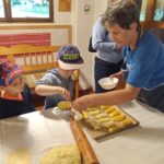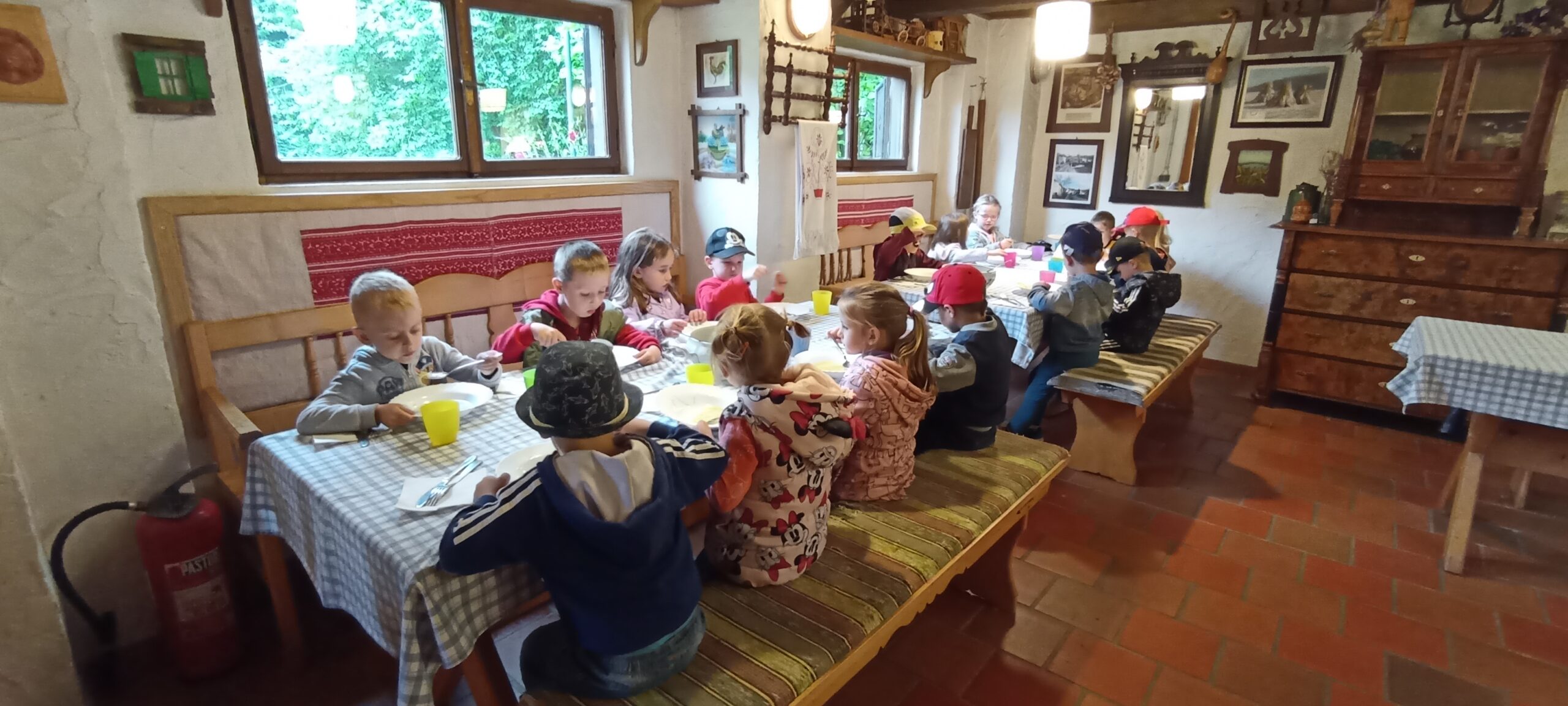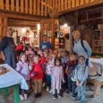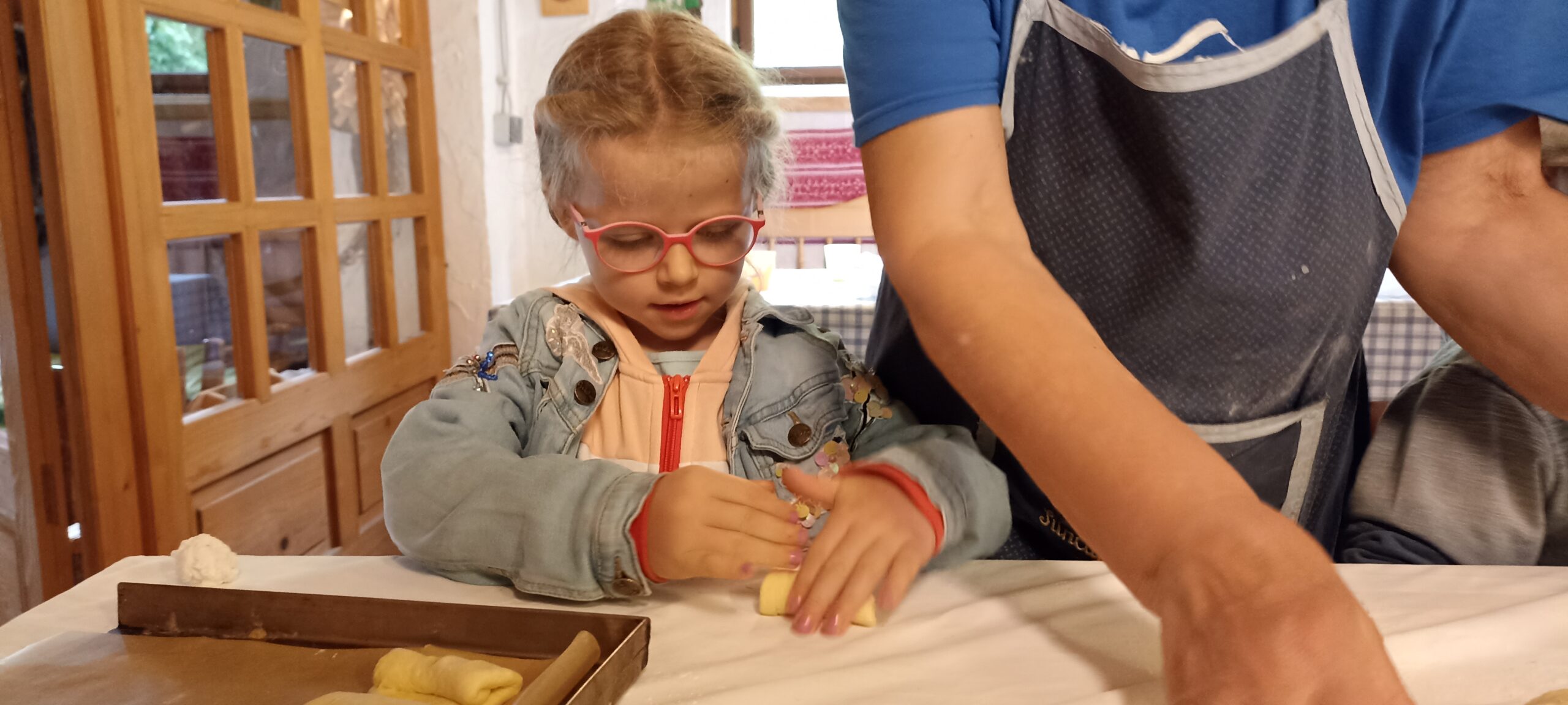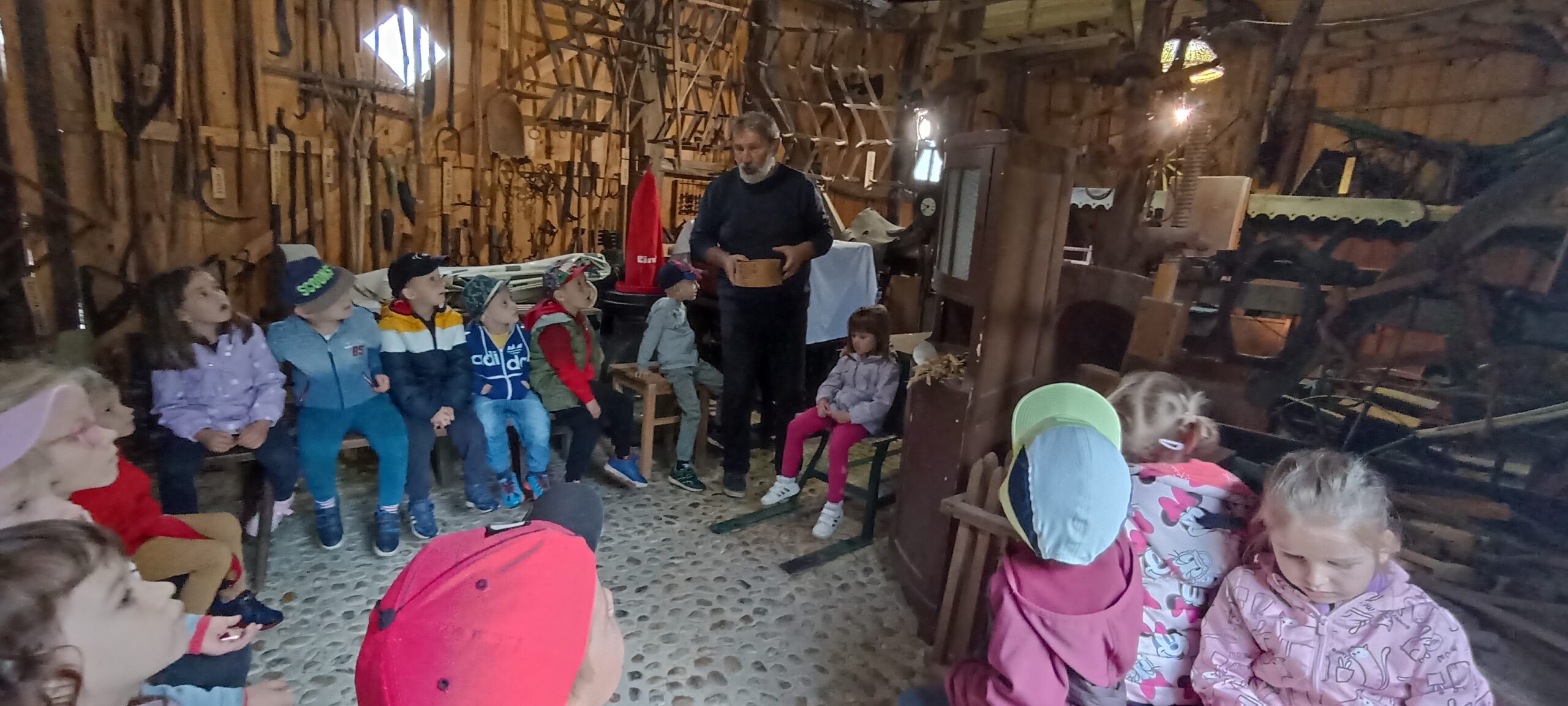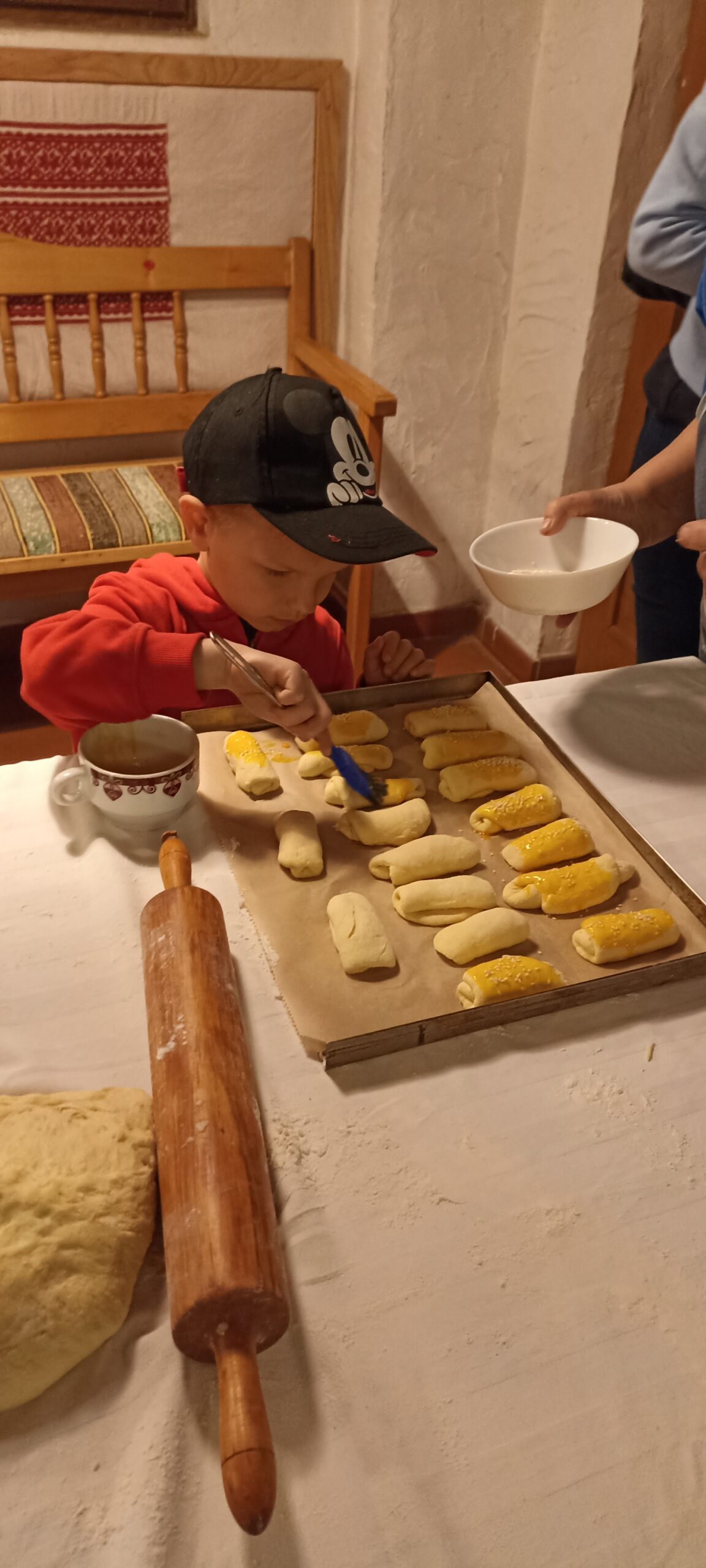Kada smo stigli u Sunčano selo nije bilo previše sunčano, no to nas nije dalo smesti u našem naumu da naučimo peći kruh. Gospodin Davor i gospođa Helena veoma su nas ljubazno dočekali i uputili na igralište kako bi se malo rastegnuli i pripremili za radionicu. Nakon brzinske igre Dan- noć uputili smo se u štagalj gdje nam je gospodin Davor pokazao razne sjemenke od kojih možemo raditi kruh i kolače. Pokazao nam je razne alate za obradu zemlje, te objasnio kako treba pripremiti zemlju prije sjetve. No, Mateo M. je već prepoznao neke od tih alata, te nam je ispričao kako on to doma s tatom radi. Nakon toga pogledali smo kako se dobiva brašno, te smo i mi isprobali zavrtjeti mlin. Od okretanja mlina smo već poprilično ogladnjeli, tako da smo se zaputili zamijesiti kiflice s gospođom Helenom. Naučila nas je kako ih namotati, čime ih mažemo da budu sjajnija i ljepša, te što dodati kako bi okus bio još bolji. Pričekali smo da se naše kiflice ispeku, te smo se ugrijali i okrijepili finim domaćim ručkom.