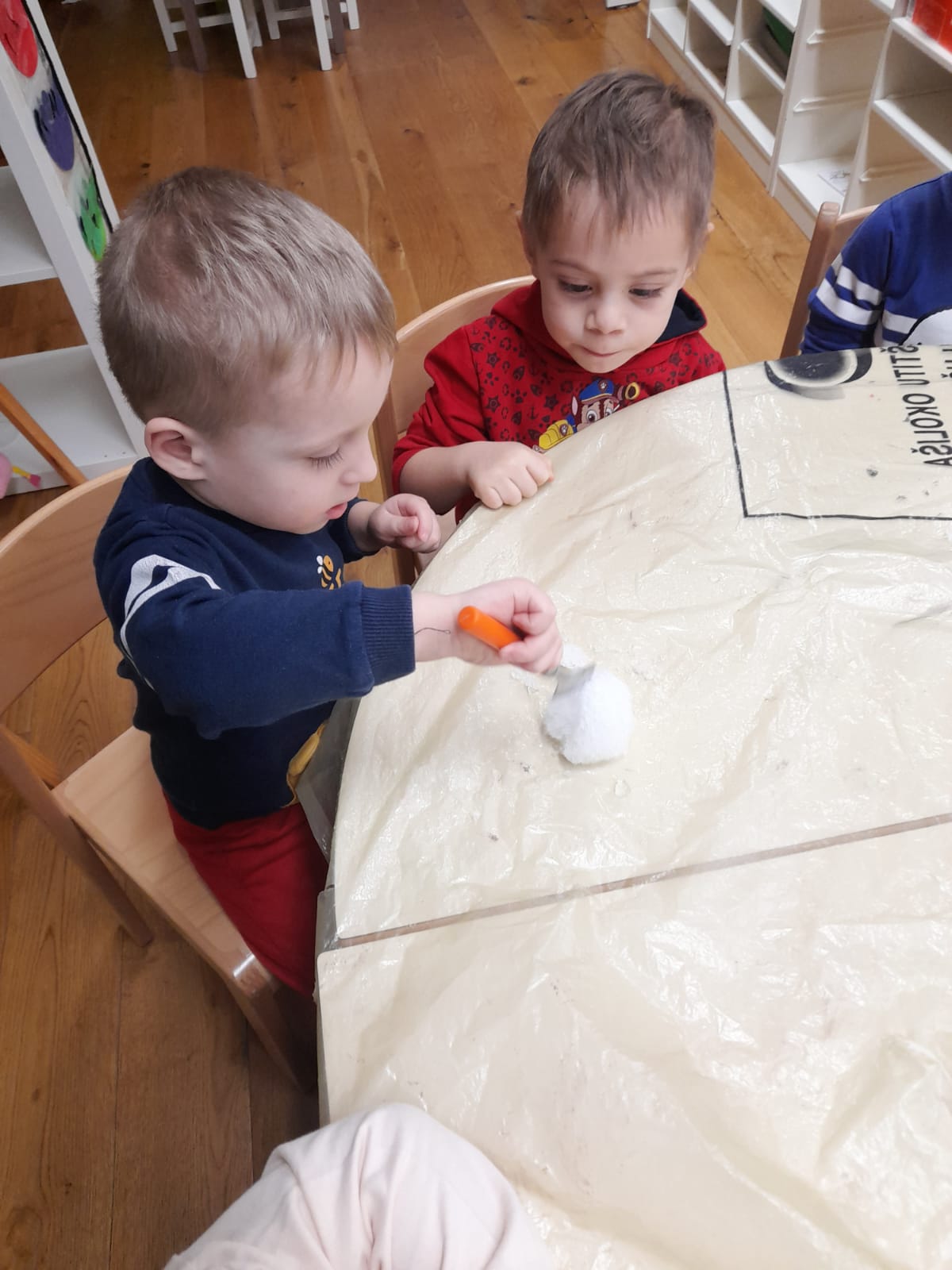 Zima nam osim hladnog vremena nudi pregršt zanimljivih aktivnosti i poticaja. Najvažniji poticaj je svakako snijeg kojemu se djeca jako vesele. Više vremena provodimo na svježem zraku koji je od izuzetne važnosti za cjelokupni razvoj djeteta, a snijeg nas je potaknuo da svoje aktivnosti provodimo vani. Djeca su snijeg donijela u sobu dnevnog boravka te su tako mogli istraživati i promatrati kako se snijeg topi. Svakodnevno sudjeluju u likovnim aktivnostima, didaktičkim igrama, pjevanju pjesmica „Padaj, padaj snježiću, Zeko i potočić, Pahuljice padajte“ i čitanju slikovnica kojima proširuju svoja znanja, stječu nova iskustva i bogate rječnik.