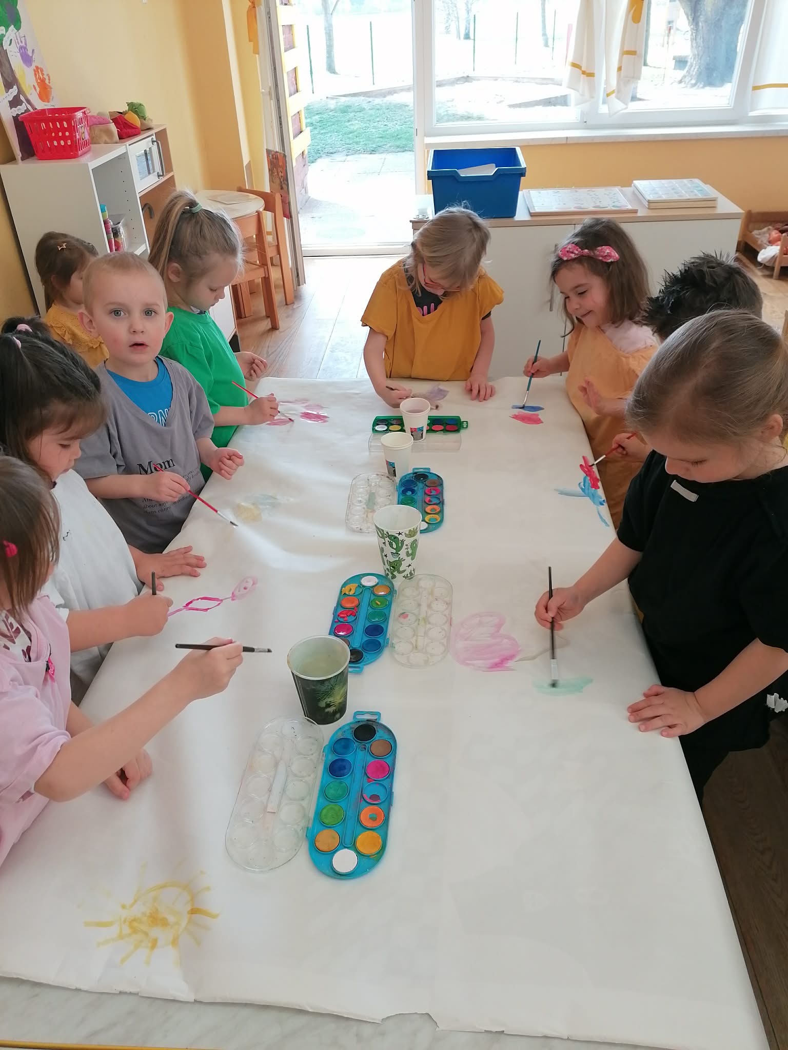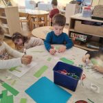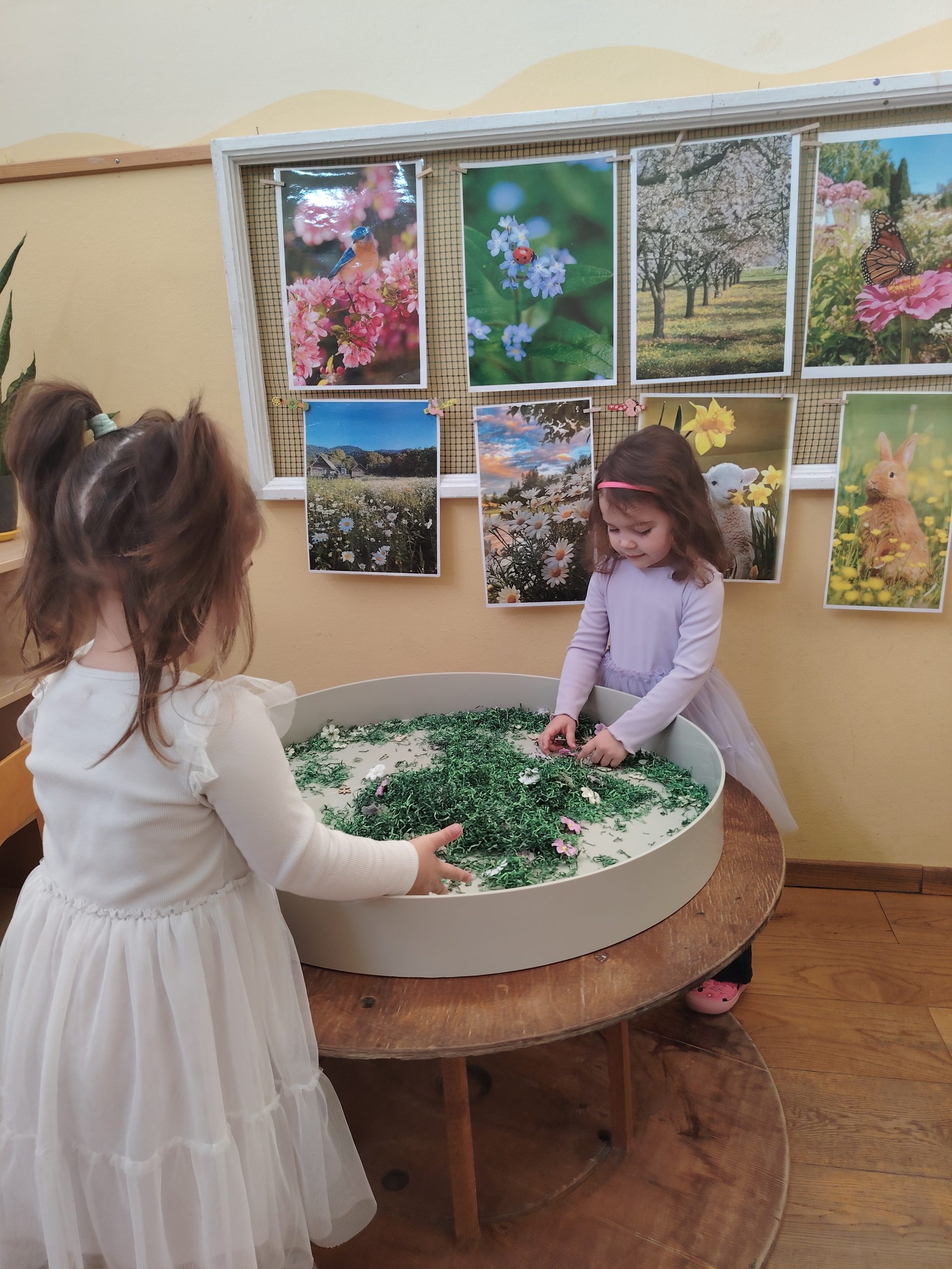 U skupini „Mišići“ istraživali smo dolazak proljeća kroz raznolike aktivnosti. Promatrali smo promjene u prirodi, proljetne fotografije i razgovarali o proljetnicama, a znanje smo obogatili slušanjem priča. Djeca su se likovno izražavala i tako razvijala finu motoriku šake i kreativnost– od kolaža su izrađivala visibabe i ljubičice, temperama slikala forzicije te olovkama crtala cica mace. Likovno smo se izražavali i vodenim bojama kada smo uz instrumentalnu glazbu “Proljeće” oslikavali proljeće na velikom formatu papira. Slušali smo i pjevali pjesme „Proljeće“ i „Proljeće u srcu“ te svirali glazbenim instrumentima. Poseban interes pobudila je igra u senzornoj kutiji gdje su djeca svakodnevno manipulirala prirodnim materijalima. Djeci su bile ponuđene nove stolne igre na temu proljetnica i proljeća (puzzle, poklapalice, slagarice…) čime smo poticali razvoj pažnje, logičkog razmišljanja te predmatematičke vještine.