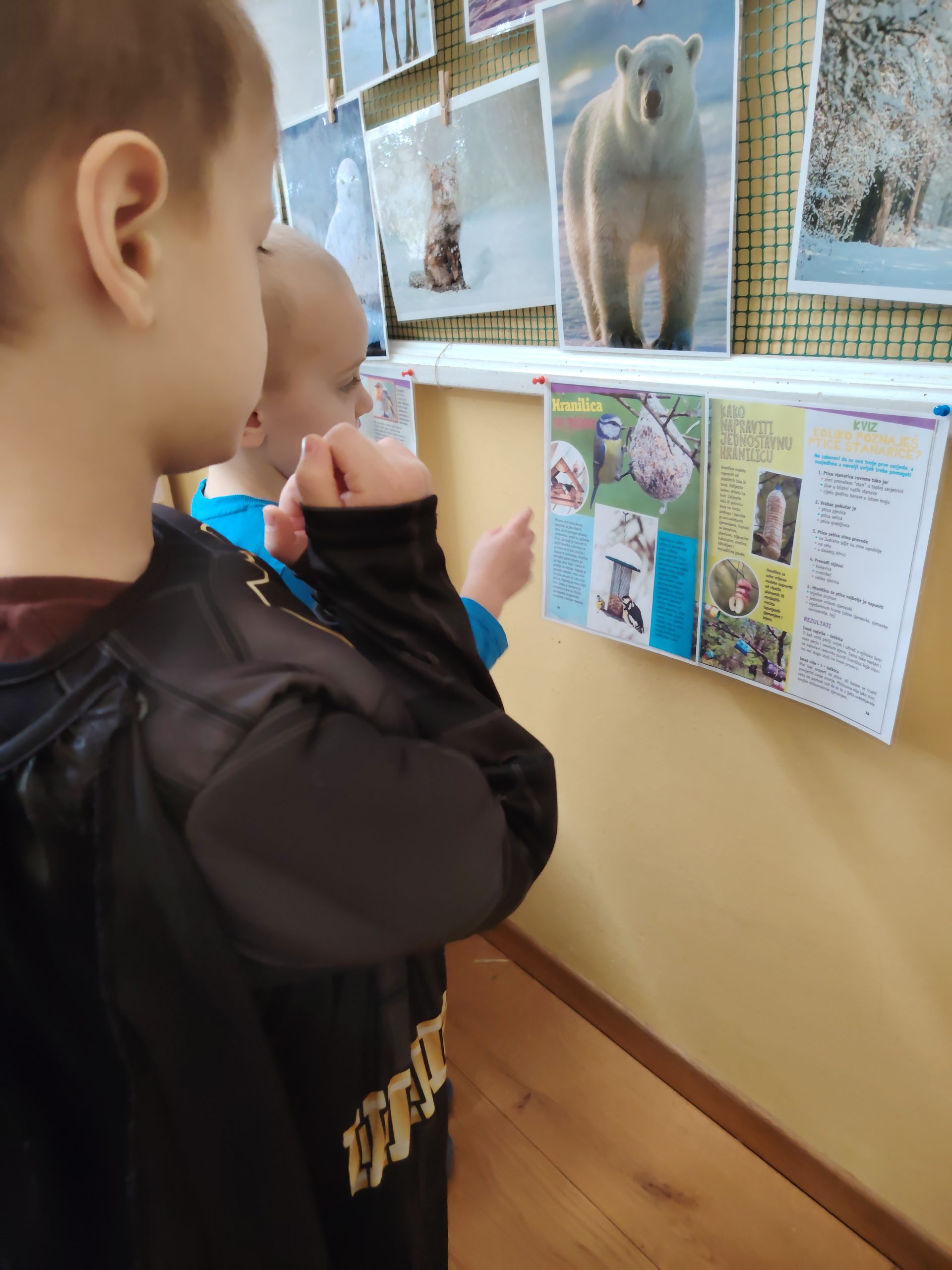 Čitali smo slikovnice Pismo za Bodu, Razbojnik sa žutom pjegom, Murko na snijegu i Najbogatiji vrabac na svijetu, a razveselile su nas pjesmice „Ptičice zimi“, „Ljuti se vrapčić na zimu“ te recitacija „Tko to šuška?“. Nakon čitanja i slušanja razgovarali smo o sadržaju i doživljajima djece, potičući razvoj govora i bogaćenje rječnika.