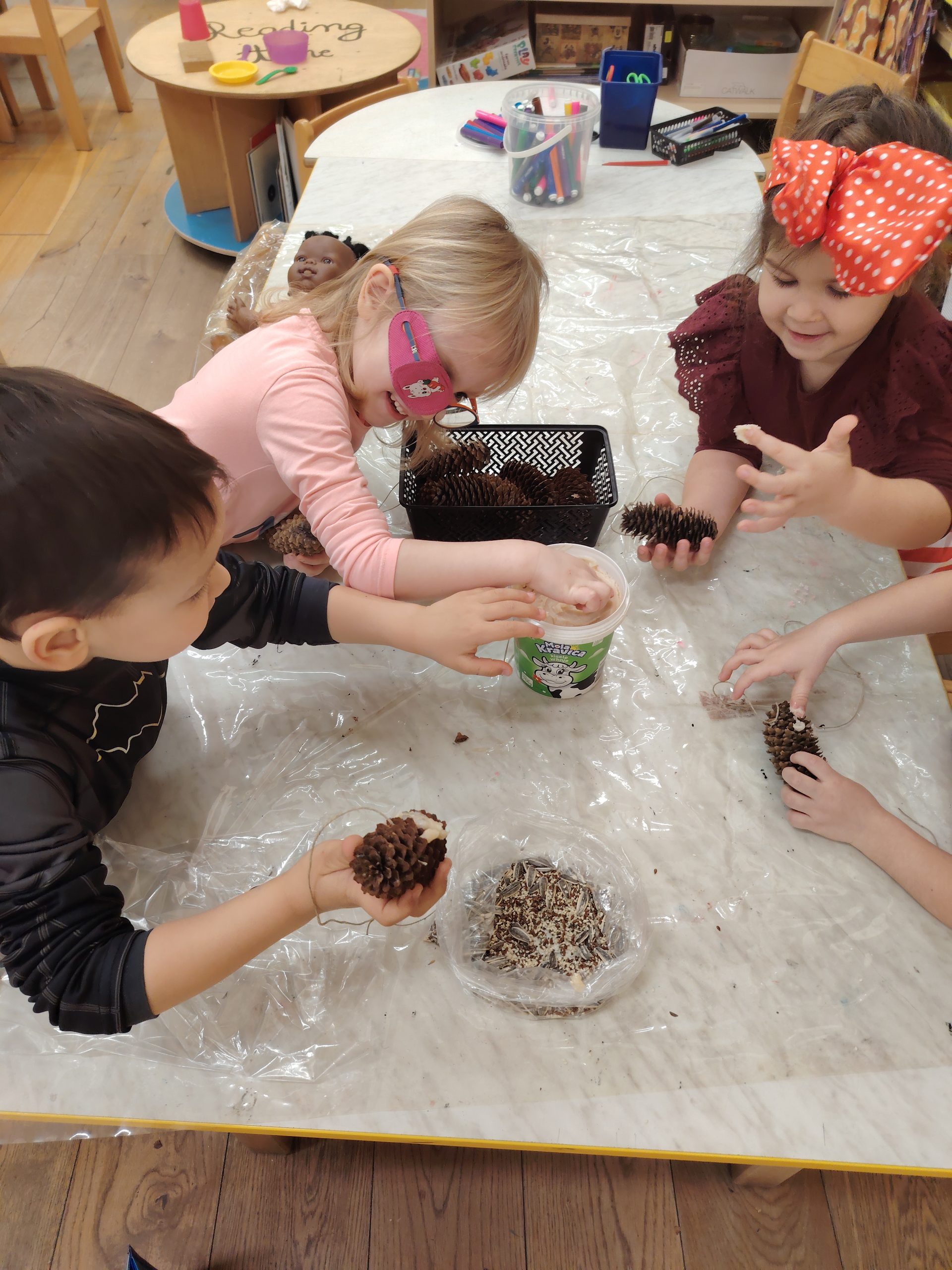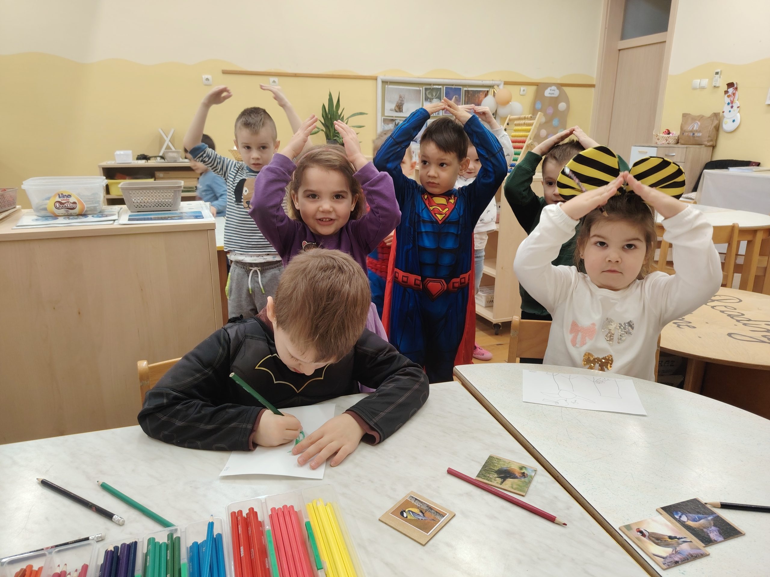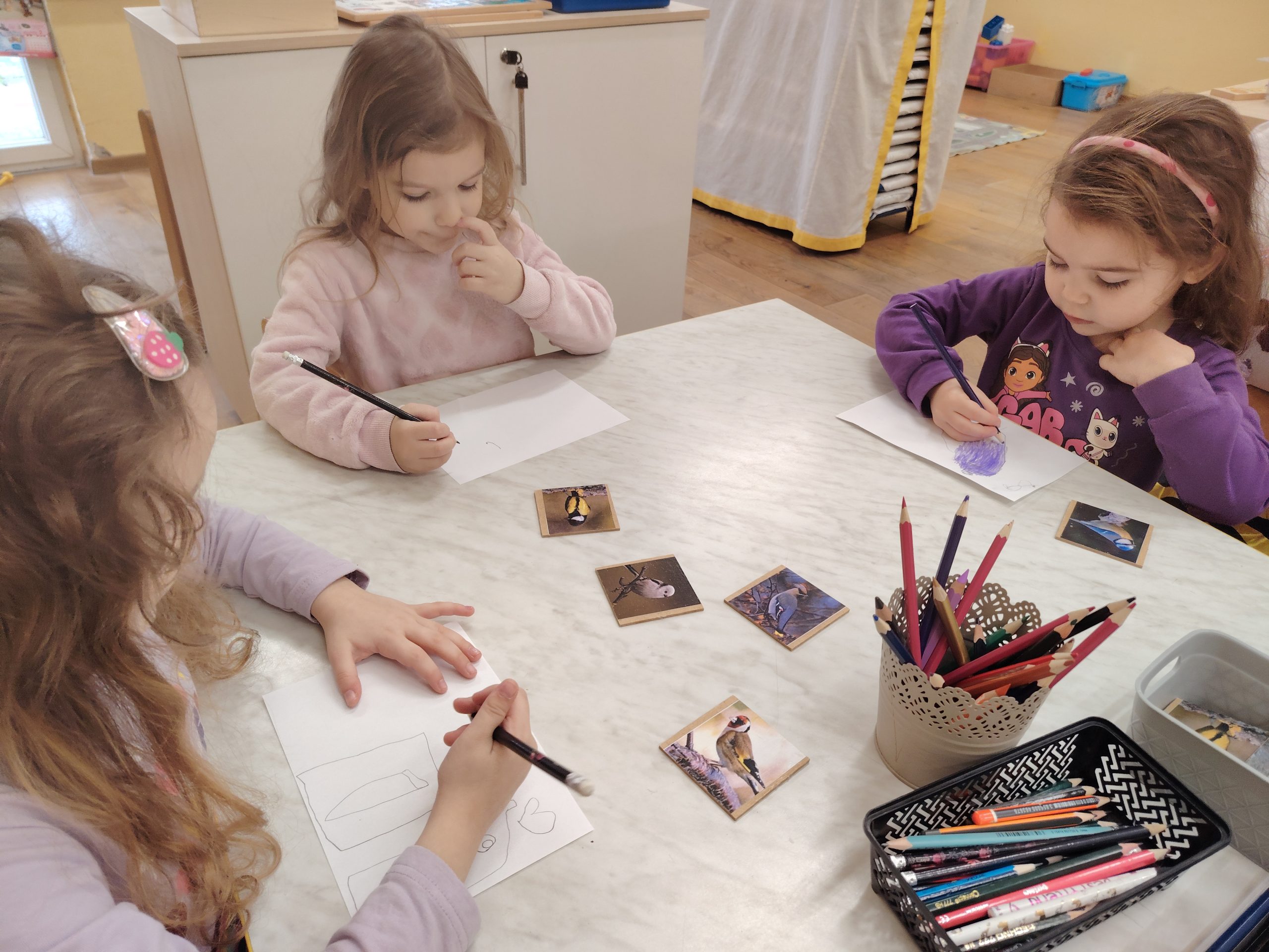Djeca su sudjelovala u izradi hranilica za ptičice te u likovnim aktivnostima crtanja i bojanja ptičica. Time smo poticali razvoj fine motorike, kreativnosti, strpljenja i odgovornosti prema prirodi. Kroz stolne igre, slagalice i građenje kućica za ptice razvijali smo pažnju, logičko razmišljanje i suradnju.