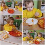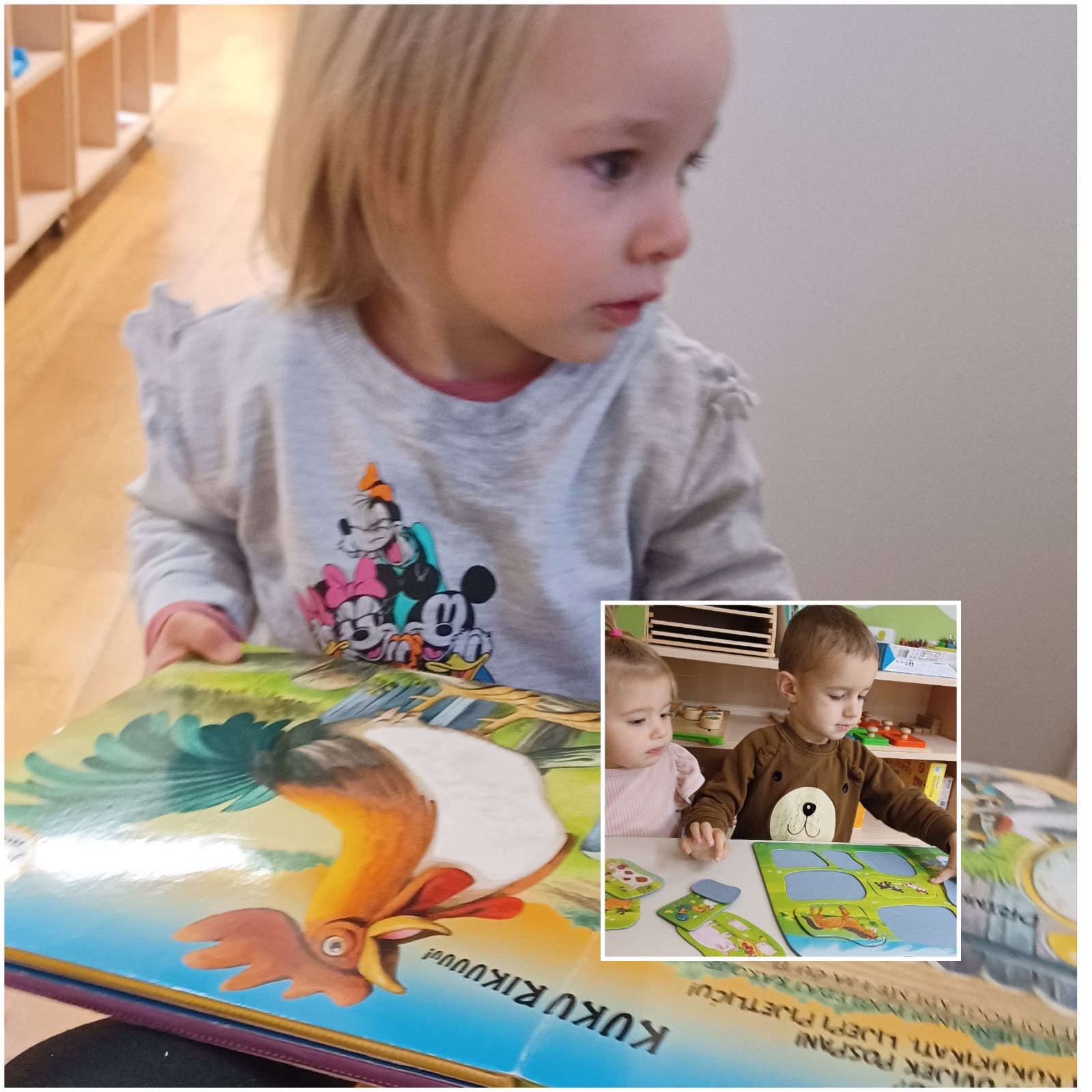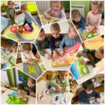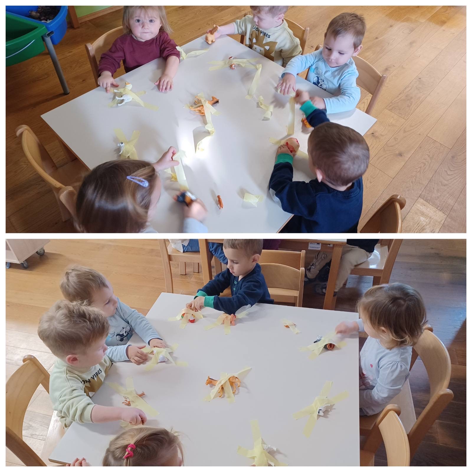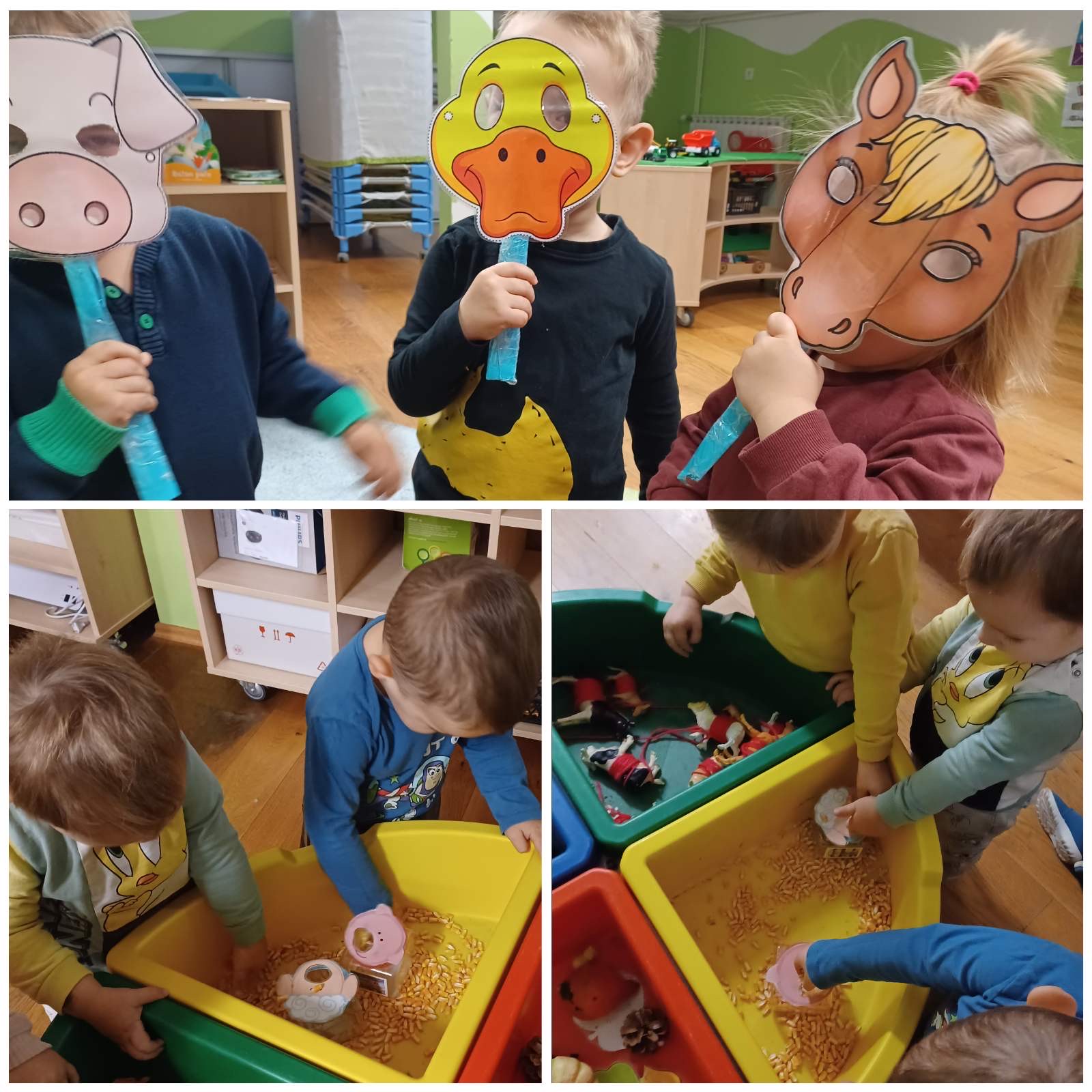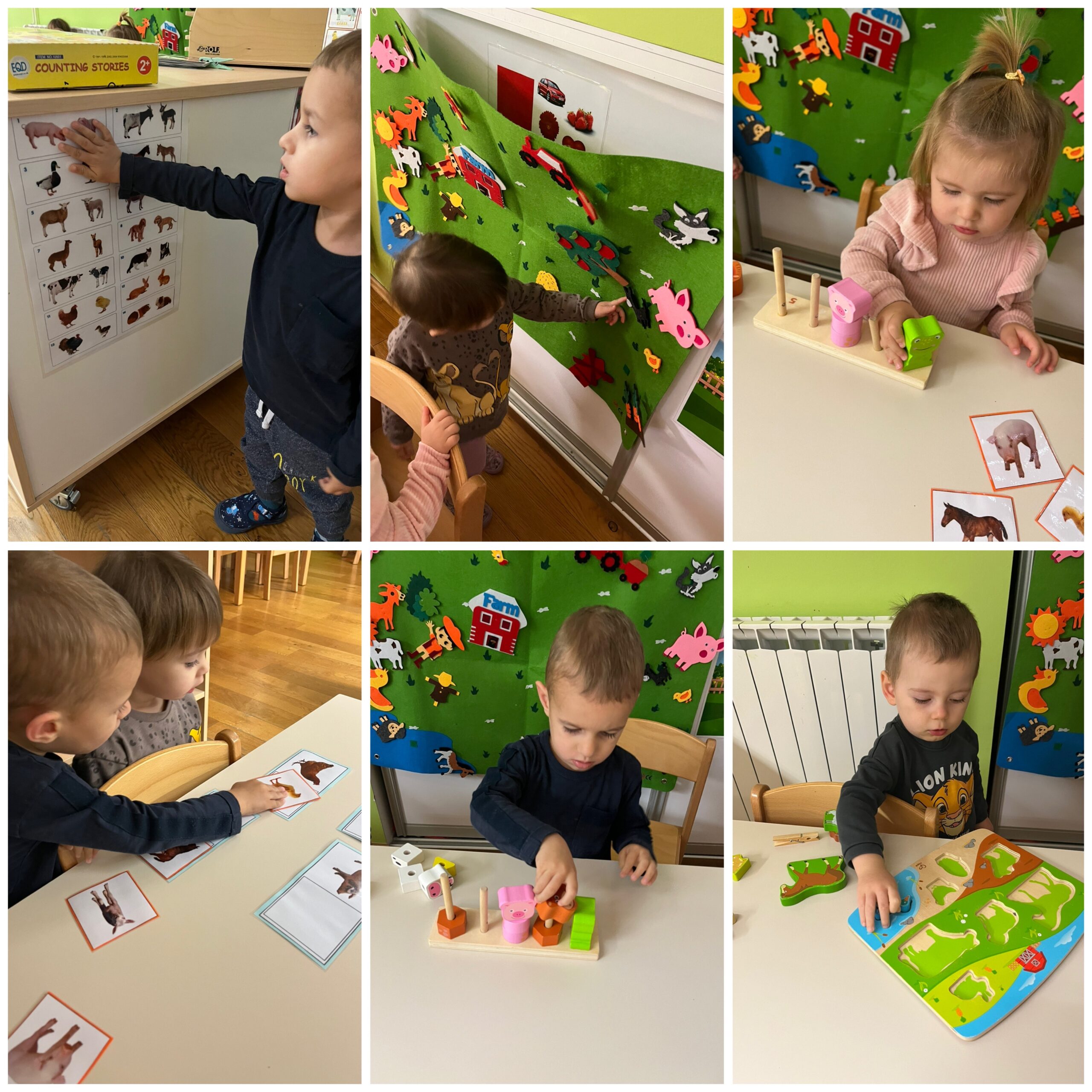 Tijekom studenog „Pužići“ su stjecali nove spozanje i znanja o domaćim životinjama. Raznim stolno- manipulativnim nastojale smo kod djece poticati spoznaju o tome koje su uopće domaće životinje te gdje žive. Tu su bile razne umetaljke, nizalice te dvodijelne spajalice sa motivima domaćih životinja i njihovih mladunaca. Djeci su se jako svidjele igre oponašanja kretanja i imitiranja glasanja životinja gdje su se svi veselo kretali zajedno sa odgojiteljicama. Odmotavanjem konca sa plastičnih figurica domaćih životinja djeca su stjecala koncentraciju i fokusiranost na radnju, a igrama punjenja i pražnjenja vještinu preciznosti. „Pužići“ su posebnu pažnju pridavali zvučnim slikovnicama koje su rado samostalno listali kao i zvučne igračke te plastične figurice domaćih životinja. Štapne lutkice su i ovaj put bile neizostavne, djeca su radosno manipulirala s njima kao i s lutkicama za prste koje su njihovne majke vješto izradile na radionici te im se ovim putem zahvaljujemo na suradnji.