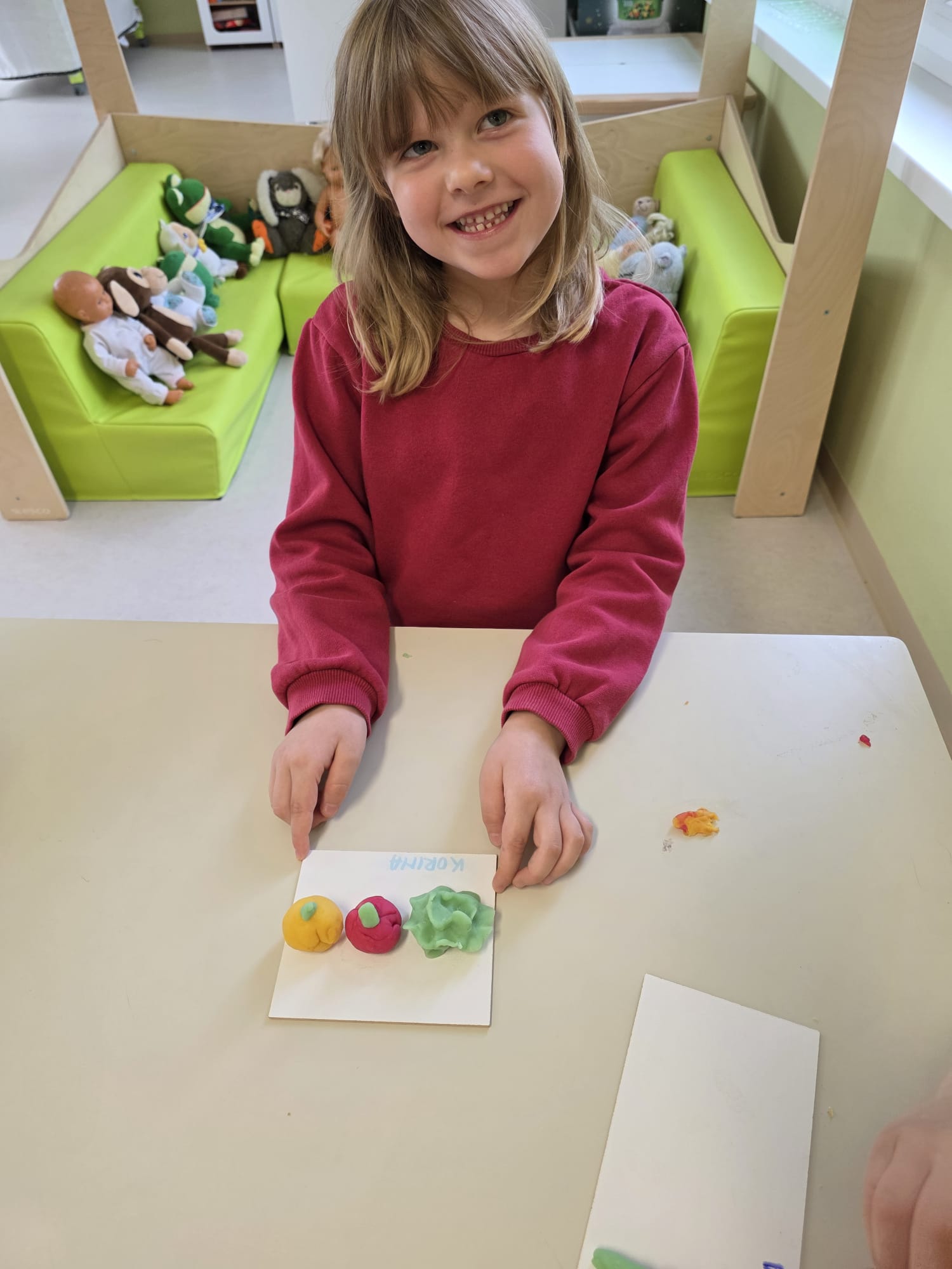 Razvijali smo i finu motoriku modeliranjem voća i povrća od plastelina, dok su kroz igre uloga (trgovina zdrave hrane i posjet liječniku) djeca učila komunicirati, surađivati i razvijati empatiju. U radionici “Ogledalo emocija” učili su prepoznati i izraziti svoje osjećaje.