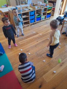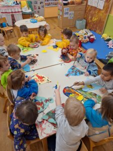 Djeca su osjetila dolazak hladnih dana tijekom boravka na zraku. Kako bi im približile karakteristike godišnjeg doba zime za djecu smo osmislile razne aktivnosti s ciljem poticanja cjelokupnog razvoja. U pričama o zimi djeci su se najviše svidjele slikovnice Priča o tri snjegovića, Što Miffy oblači i Rukavica. Uz stihove Snjegović popraćene slikama radili smo pokrete rukama i tijelom. Upoznali smo odjevne predmete koji nas griju zimi: šal, kapa i rukavice.