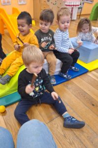 Pjevali smo pjesmice Padaj padaj snježiću, Vrapčić u zimi i Jure jure saonice. Tijekom pjevanja pjesmice Jure jure saonice s pomoću drvenih štapića udarali smo ritam pjesmica, a tijekom pjevanja pjesmice o snijegu bacali smo u zrak loptaste vate kako bi stvorili zimski ugođaj u sobi.