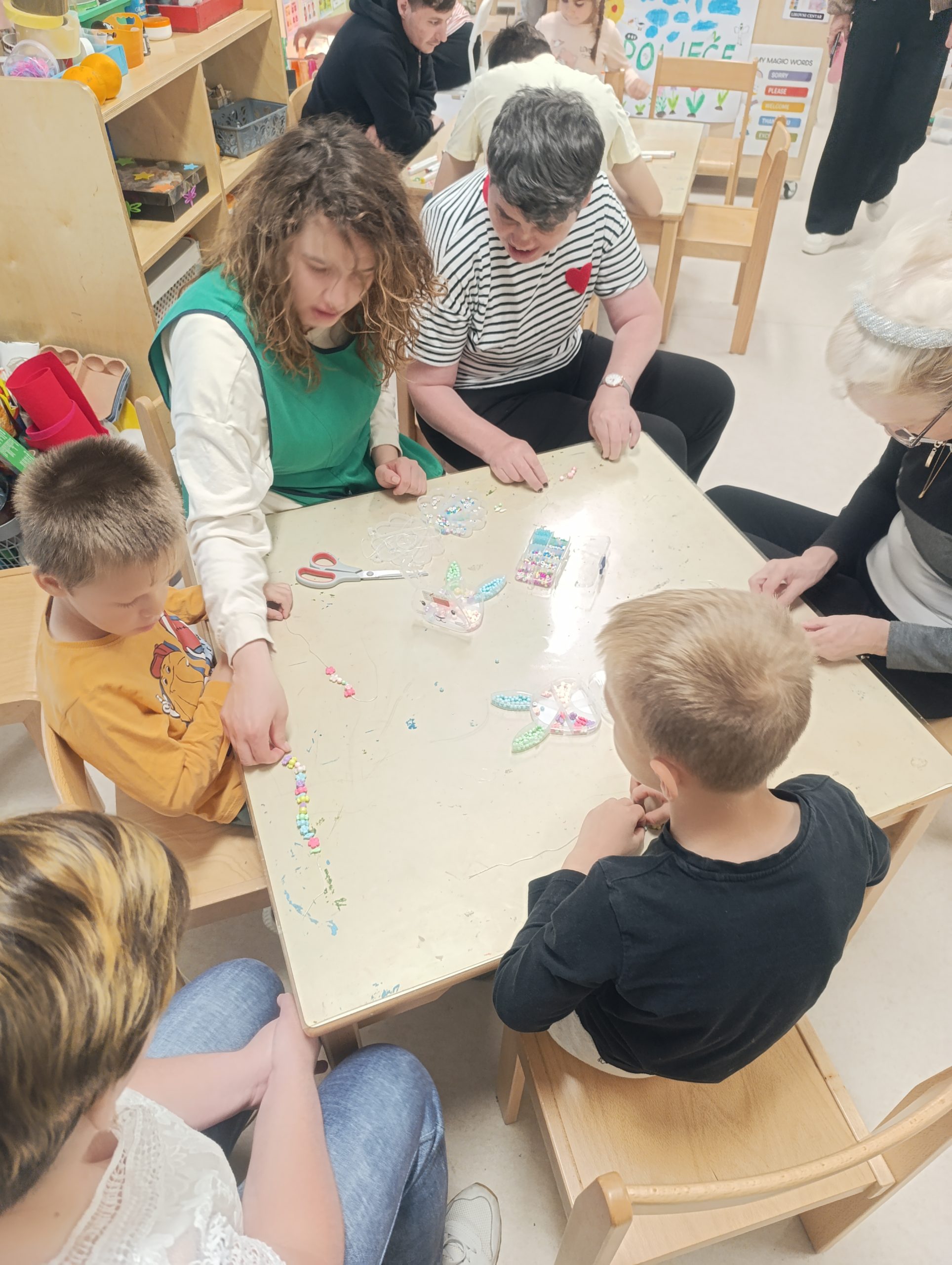 Tijekom boravka u skupini, zajedno s djecom izrađivali su nakit, sudjelovali u raznim društvenim i senzornim igrama, a posebno veselje donijelo je slavlje jednog sedmog rođendana. Druženje je zaokruženo malim koncertom koji je dodatno uljepšao ovu toplu i razigranu atmosferu.